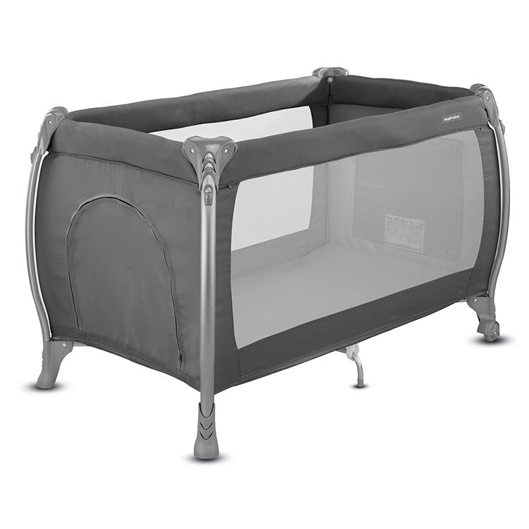 Lodge es la cuna de viaje que puede utilizarse como una cama normal. Dispone de kit para doble altura y colchón acolchado, bolsillo, ventana con cremallera y mosquitera. Es ligera y de colores vivos para decorar la habitación con estilo y encanto.