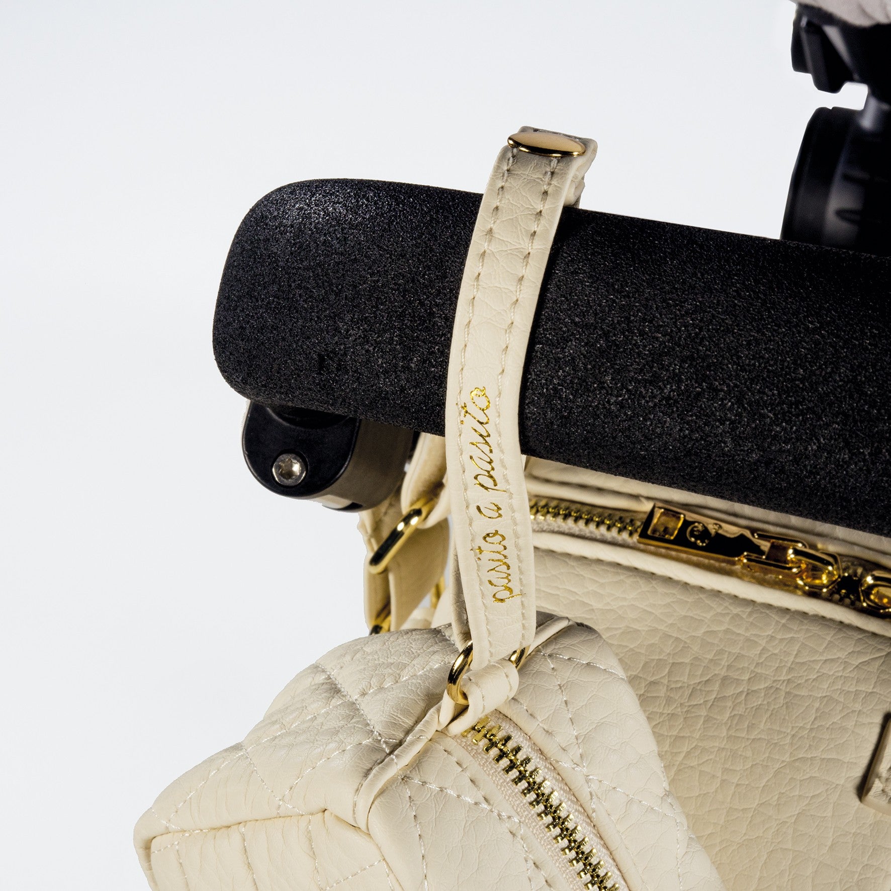 Asa con broche para llevarla colgada de la bolsa de maternidad, del cochecito o la sillita.