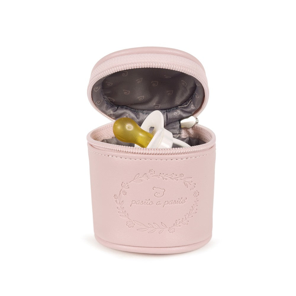 Funda para guardar el chupete de tu bebé. Gracias a su asa con broche podrás llevarla colgada de la bolsa de maternidad, del cochecito o la sillita.