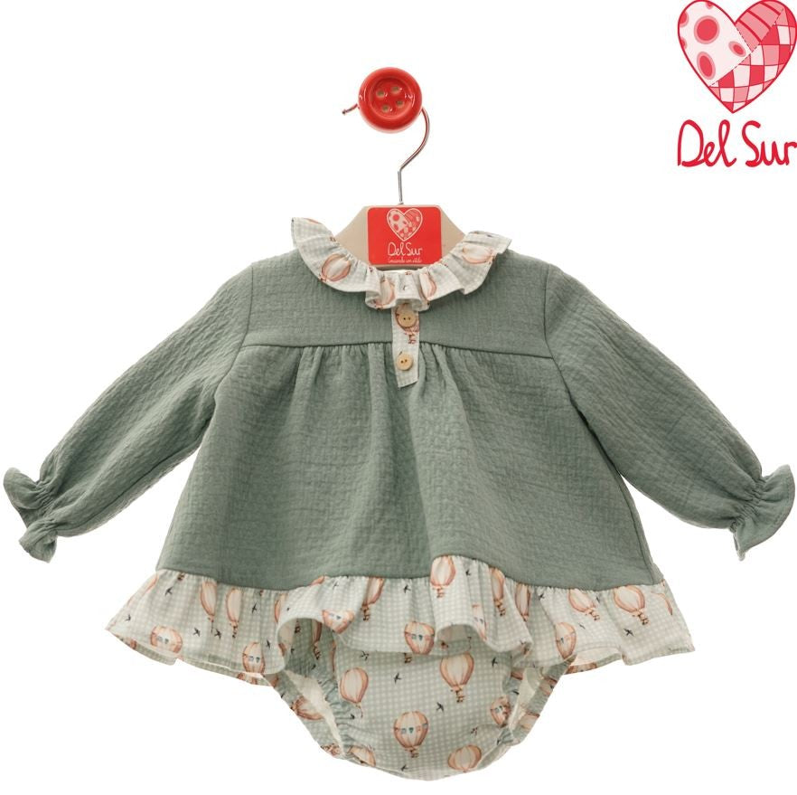 Este Jesusín Cleopatra 2077 Del Sur combina diseño y comodidad con un estampado de dibujos infantiles en tonos verde empolvado que aporta un toque dulce y moderno. Su manga larga y falda de vuelo ofrecen libertad de movimiento y abrigo adecuado para climas frescos. El detalle de botones en el pecho añade un acabado delicado y cuidado. Incluye braguita a juego para completar el conjunto y garantizar un ajuste perfecto. Fabricado en España con materiales de calidad, este conjunto asegura durabilidad y confort para los más pequeños, siendo ideal para ocasiones especiales o el día a día.