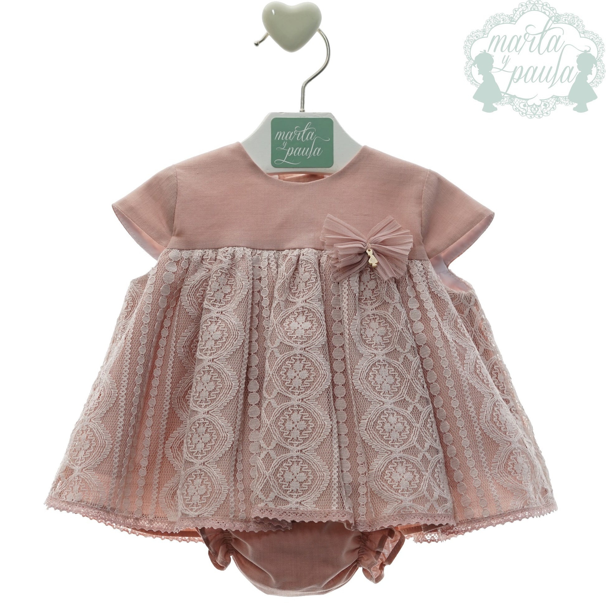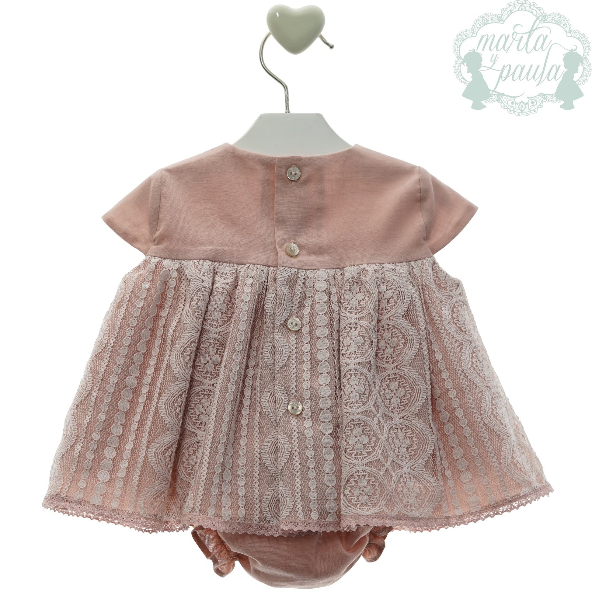 La colección Armónica de Marta y Paula representa a la perfección el estilo refinado y delicado de la firma. Este jesusito de manga corta en un elegante color rosa palo combina un cuerpo elaborado en tejido plisado que aporta textura y sofisticación con una falda de tul adornada con encajes cuidadosamente seleccionados para un acabado romántico y femenino. Además, incluye una braguita a juego que asegura un conjunto completo y cómodo para la niña. Cada detalle está pensado para ofrecer calidad y estilo, y su fabricación íntegra en España garantiza altos estándares en materiales y confección. Ideal para ocasiones especiales donde se busca elegancia y confort.