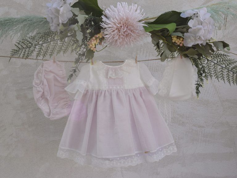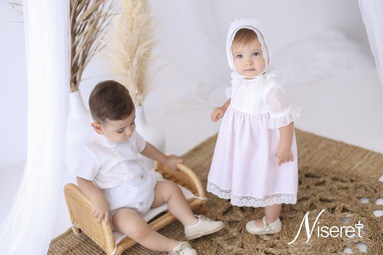 Vestido de bautizo para bebe de la firma Niseret que pertenece a su nueva colección de Ceremonia.