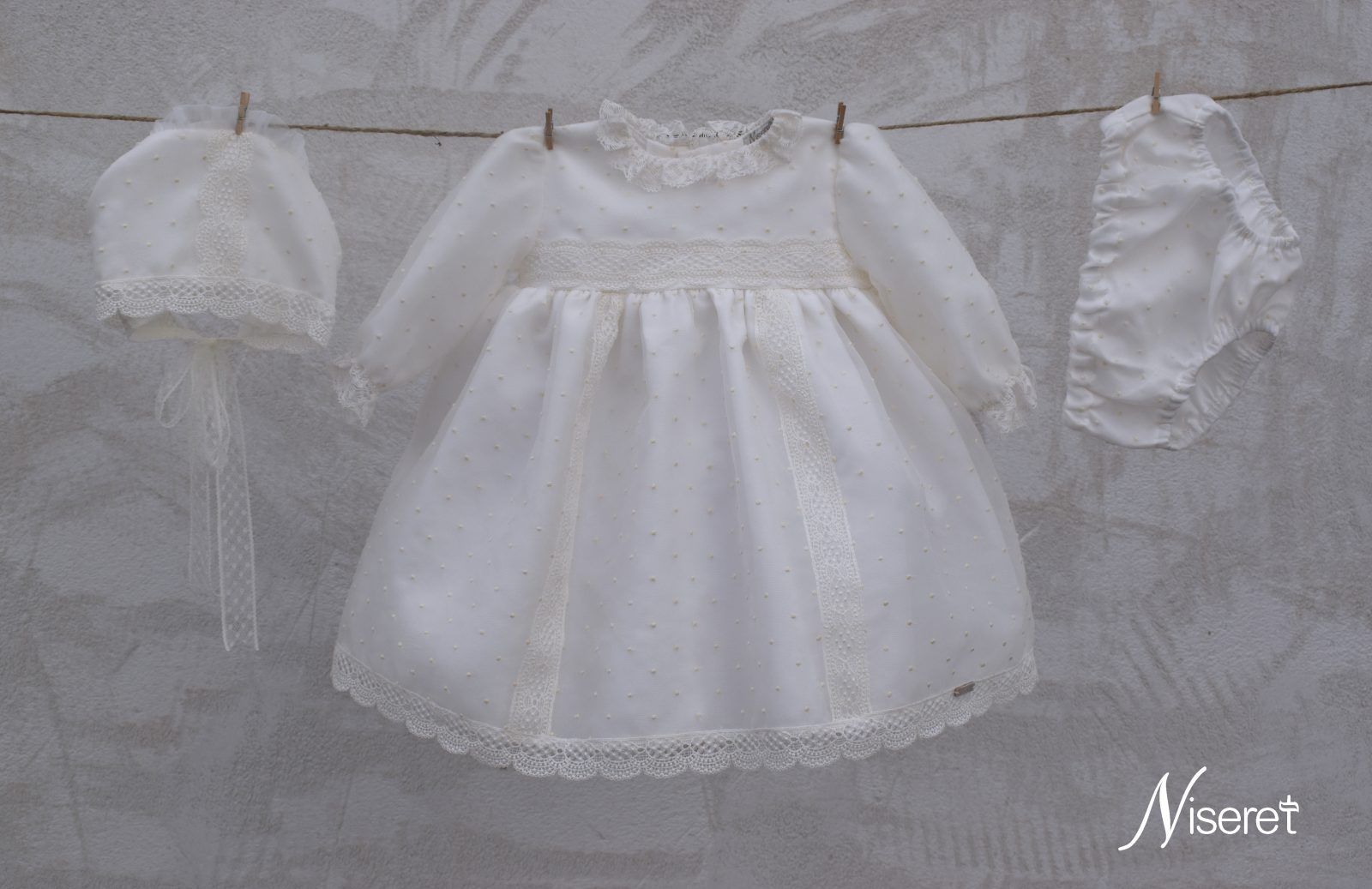El Jesusito Bebé Ceremonia Niseret 5647 es una pieza exclusiva de la nueva colección de bautizos de la firma Niseret, diseñada para resaltar la ternura y elegancia del bebé en un día tan especial. Confeccionado en Organza Plumeti Bordada, combina ligereza y sofisticación, mientras que sus acabados en puntilla de guipur aportan un detalle artesanal que eleva el diseño. La falda, forrada con varias capas, ofrece un volumen generoso y un movimiento delicado. Además, incluye capota y braguita a juego, garantizando un conjunto completo y armonioso. Fabricado con esmero en España, este vestido asegura calidad y distinción para ceremonias inolvidables.