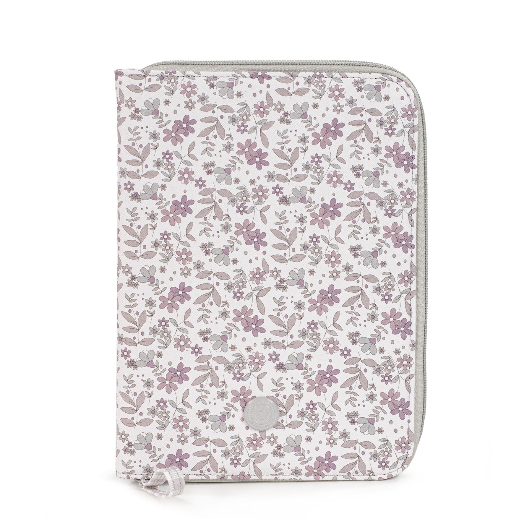 Este libro portadocumentos esta elaborado en resistente y suave polipiel impresa con flores, cuenta con bolsillos en cada lado y está forrado en el interior.