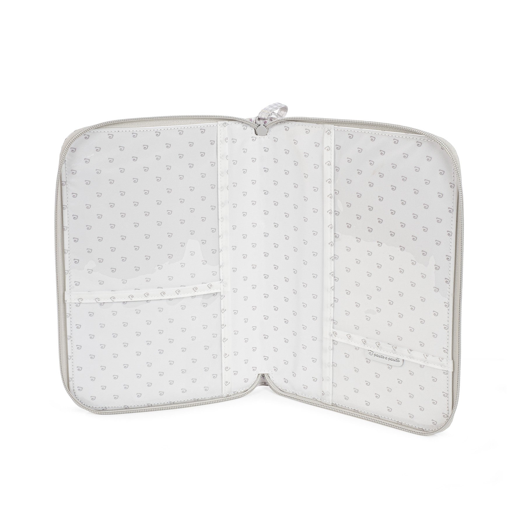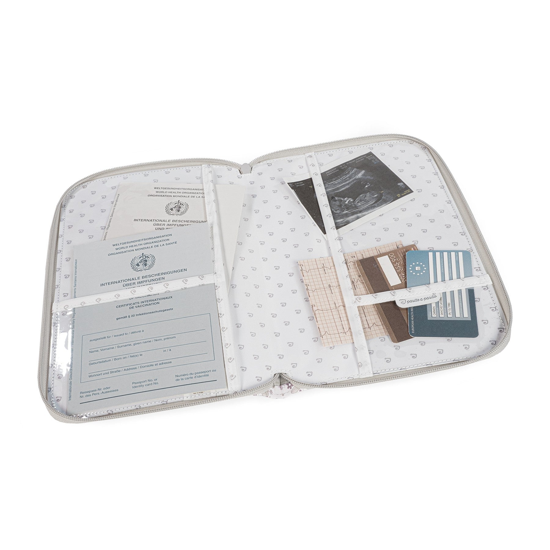 Cuenta con un práctico cierre de cremallera para así guardar seguro el libro de nacimiento y todos los documentos de tu bebé. Acabados de calidad.