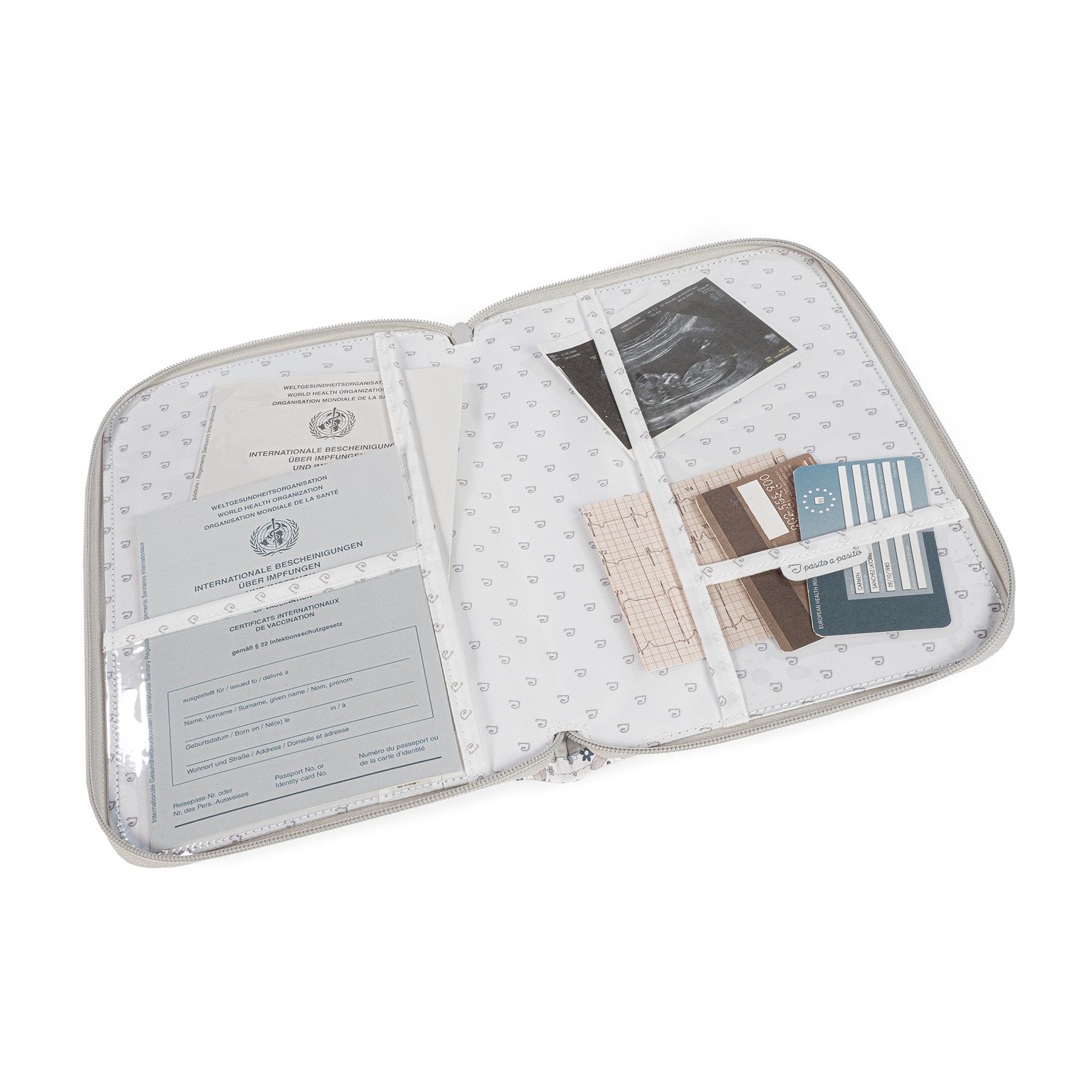 Este moderno y bonito libro de nacimiento para bebé Delia es un funcional portadocumentos de diseño a juego con la bolsa de maternidad. Un complemento indispensable para llevar contigo a todas partes que te ayudará a tener ordenada toda la documentación y papeles médicos de tu bebé.