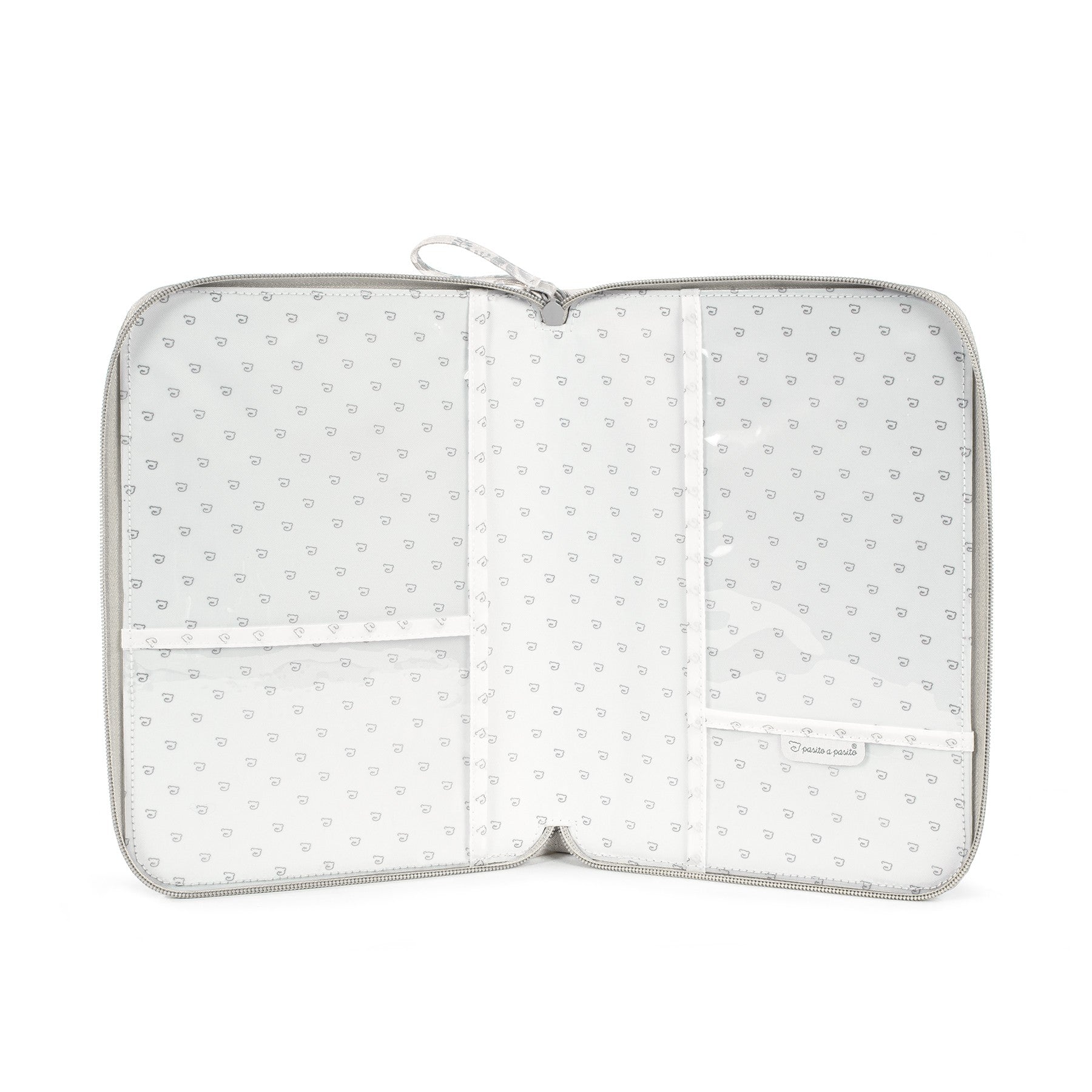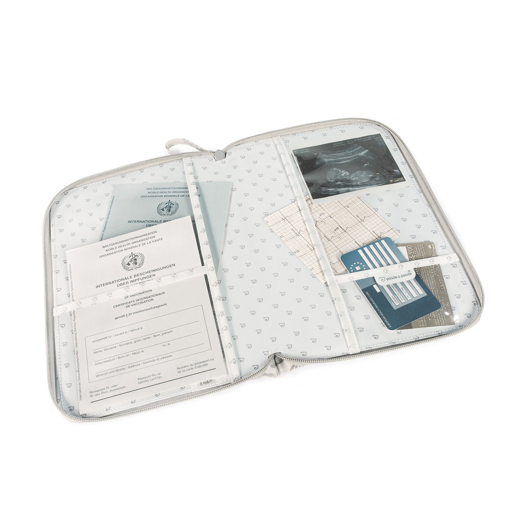 Cuenta con un práctico cierre de cremallera para así guardar seguro el libro de nacimiento y todos los documentos de tu bebé. Acabados de calidad.