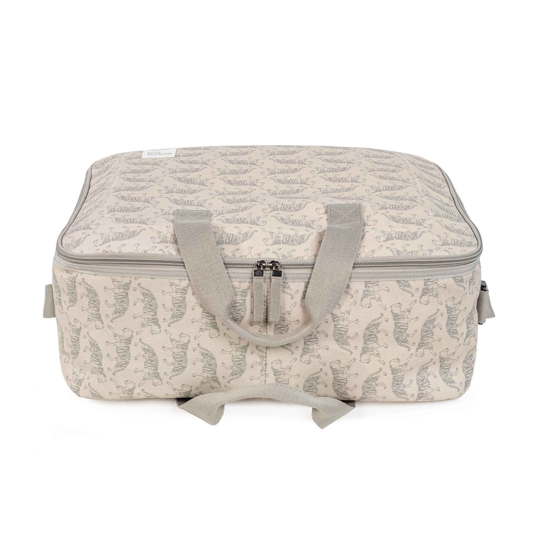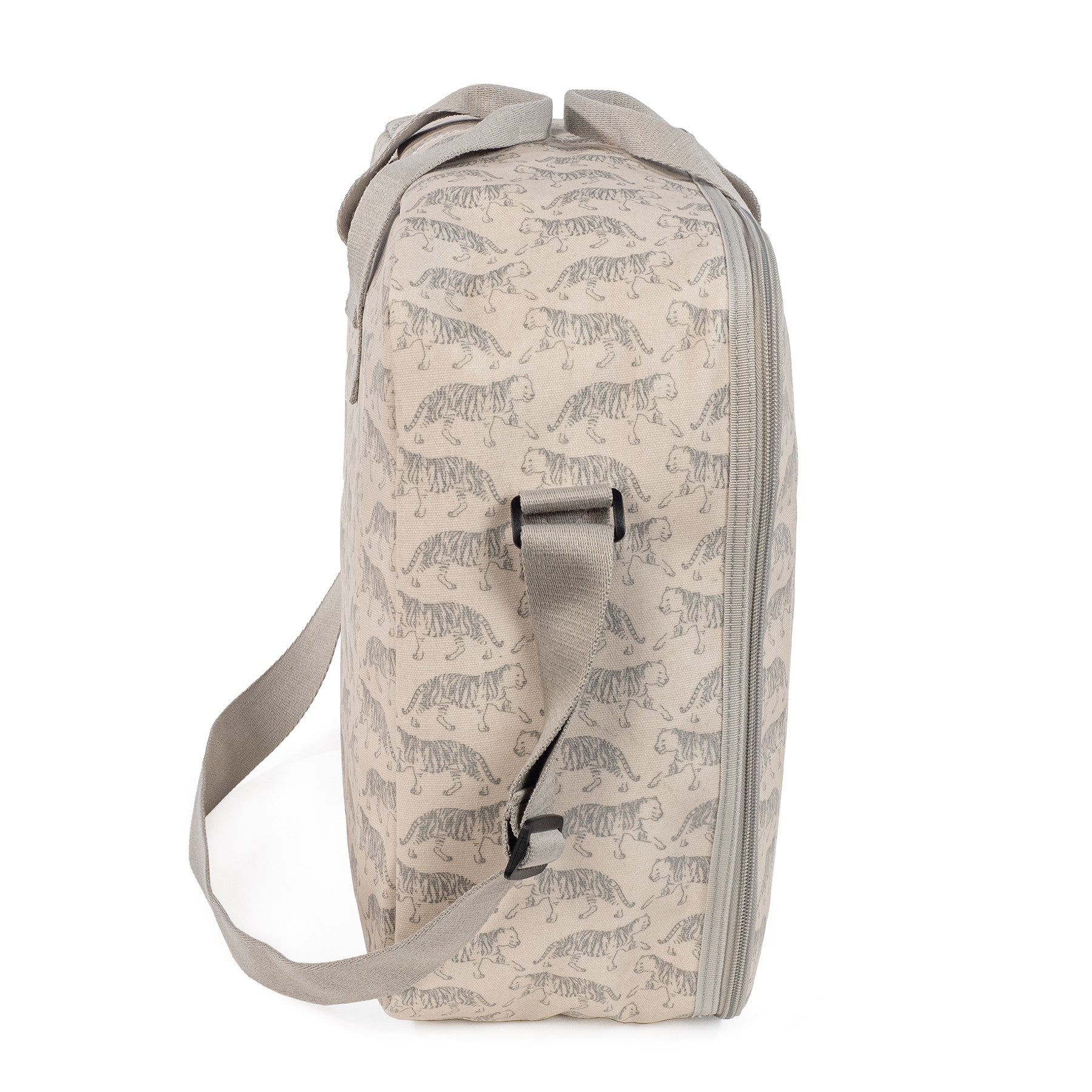 La maleta de bebé Sabana con estampado de tigres arena es un bolso especialmente diseñado para el momento más importante del embarazo, que es la llegada de tu bebé, momento en el que hay un montón de cosas que preparar. Por esto necesitas un espacio cómodo para transportar todo lo necesario para ti, el padre y el niño.
