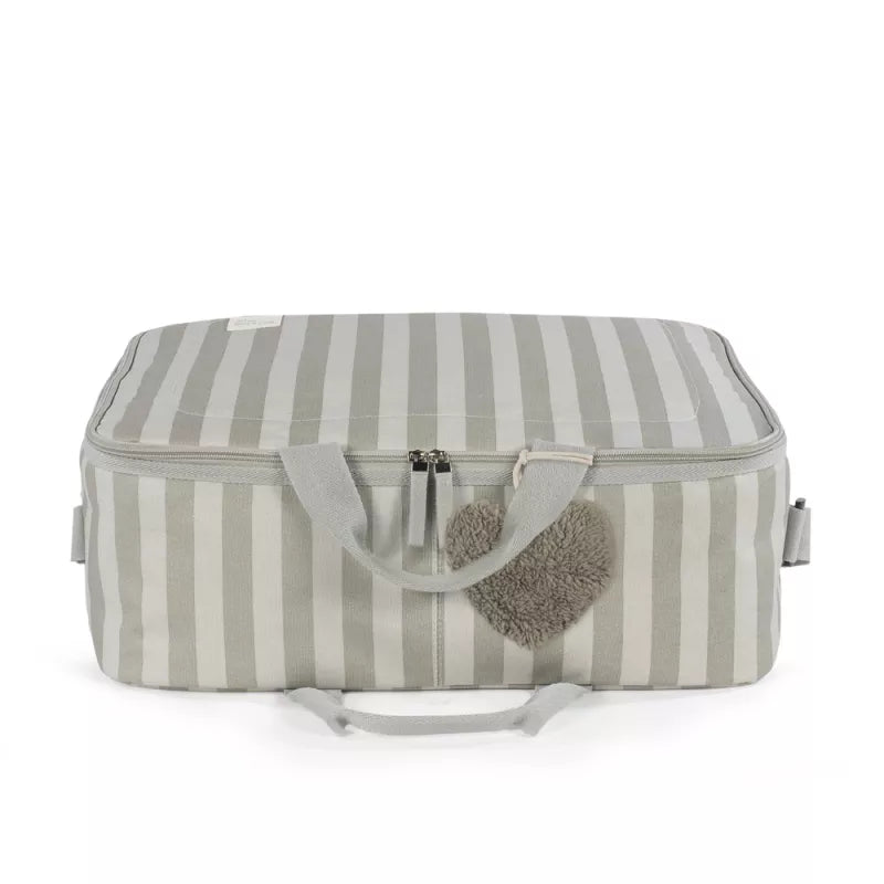 La maleta de bebé Sintra de rayas es un bolso especialmente diseñado para el momento más importante del embarazo, que es la llegada de tu bebé, momento en el que hay un montón de cosas que preparar. Por esto necesitas un espacio cómodo para transportar todo lo necesario para ti, el padre y el niño.