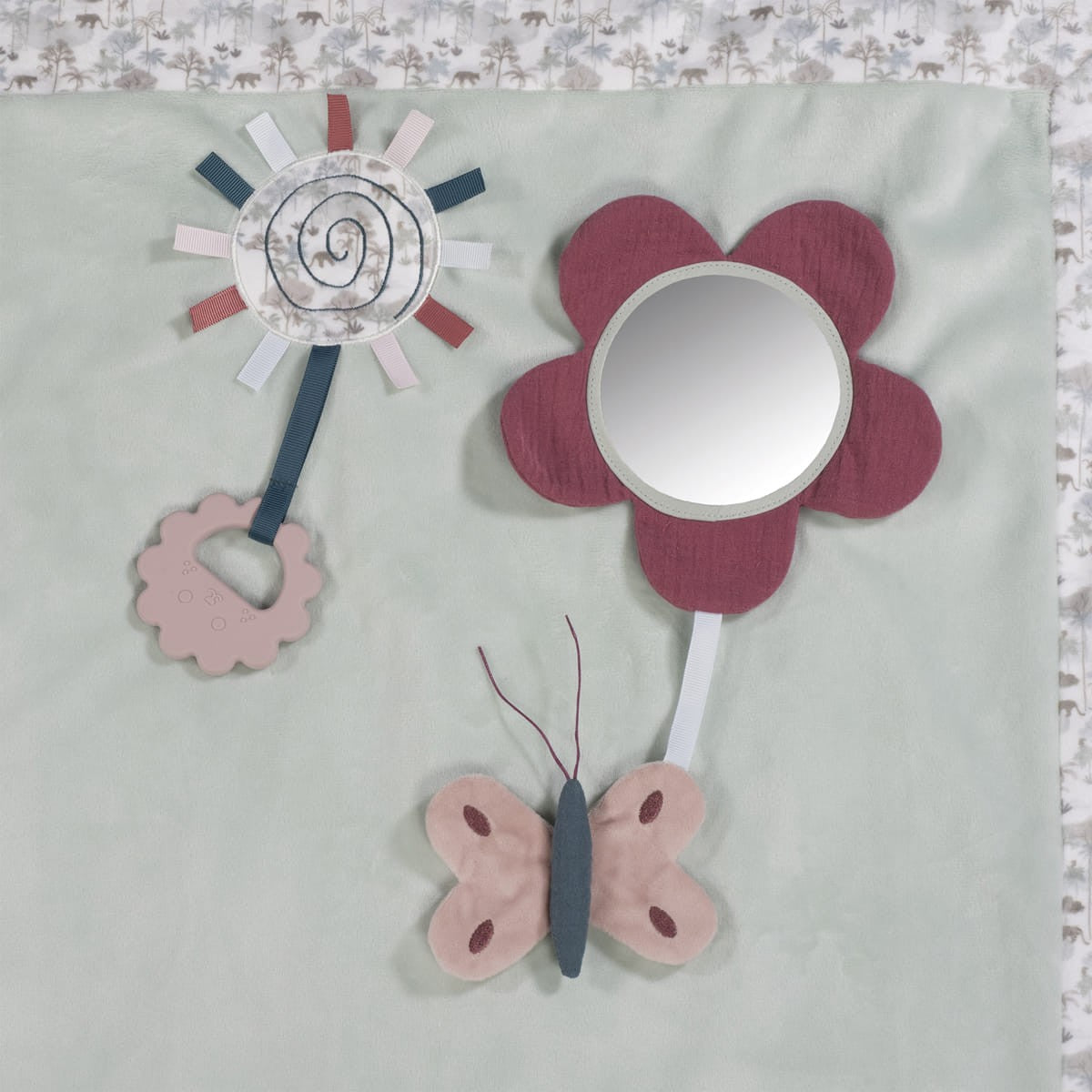 Confeccionada en suave velour ofreciendo una superficie cómoda y segura para que el bebé se mueva libremente, fomentando su independencia y capacidad de exploración. Incluye diversas actividades como una flor con espejo, un mordedor y diferentes texturas que fomentan la curiosidad y el juego imaginativo. Las texturas variadas y los elementos interactivos ayudan a desarrollar las habilidades sensoriales y motoras finas del bebé. Amplia superficie que proporciona suficiente espacio para que el bebé gatee y juegue.
