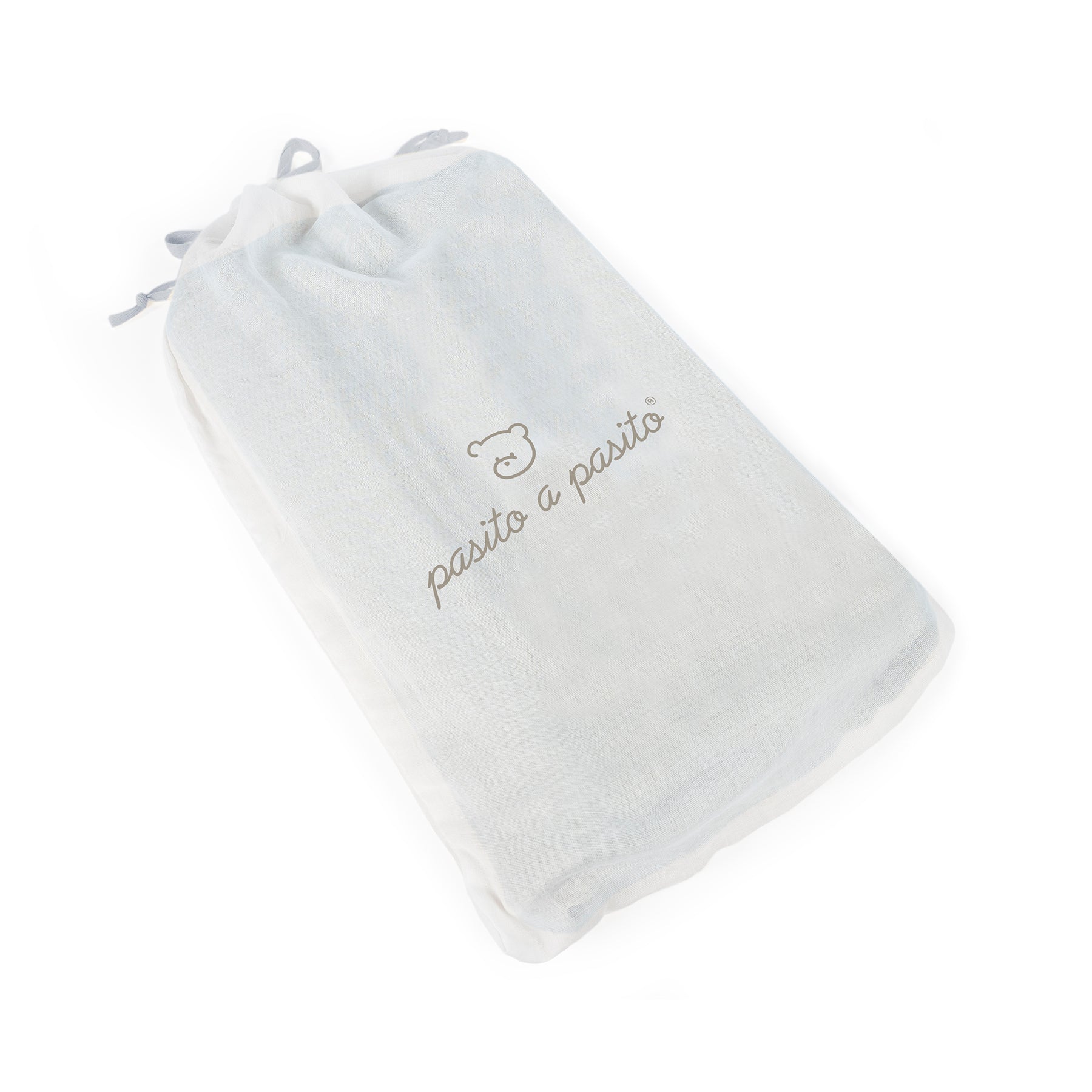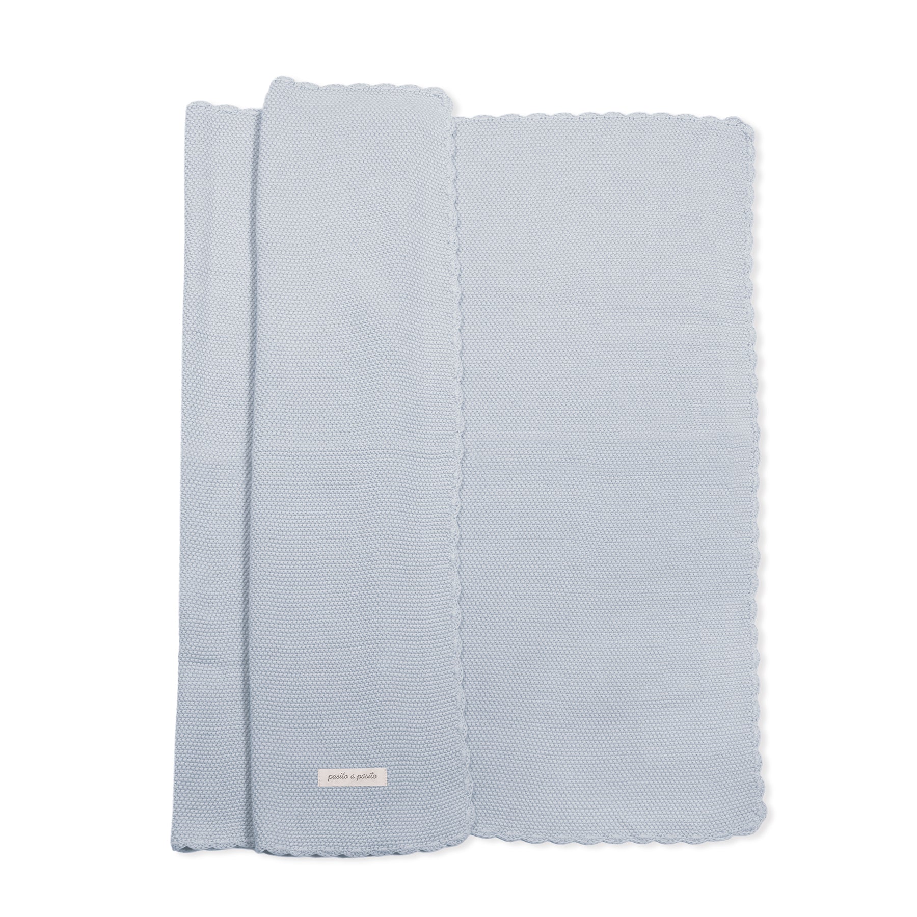 Manta Tricot de Pasito a Pasito, elegancia y suavidad para tu bebé. Envuelve a tu bebé en la suavidad y calidez de la manta Tricot de Pasito a Pasito, confeccionada en algodón 100% con un delicado punto de arroz y elegante acabado de crochet en ondas. Ideal para el carrito, la cuna o los paseos, su diseño atemporal y colores suaves combinan con cualquier estilo. Material tricot 100% algodón. Incluye bolsa de hilo con logo, ideal para regalar. Gran calidad y mucho estilo. Todos nuestros productos están fabricados conforme a las más exigentes normativas europeas. Certificación SVHC / EN-14362 Azo free libre de sustancias nocivas. De fácil limpieza, se recomienda lavar a máquina a 30º. Los productos para bebé de Pasito a Pasito cuentan con un diseño muy diferente a todas las demás. Sus colecciones se caracterizan por el trabajo al detallada, pensadas siempre desde un punto de vista práctico. Utilizan materiales de primera calidad para remarcar la elegancia y la armonía en cada una de sus piezas. Nuestros modelos son exclusivos y de estilo inconfundible, pensados en las madres actuales que gozan de buen gusto y que aprecian los detalles tanto como nosotros. Medidas: 75 x 100 cm.