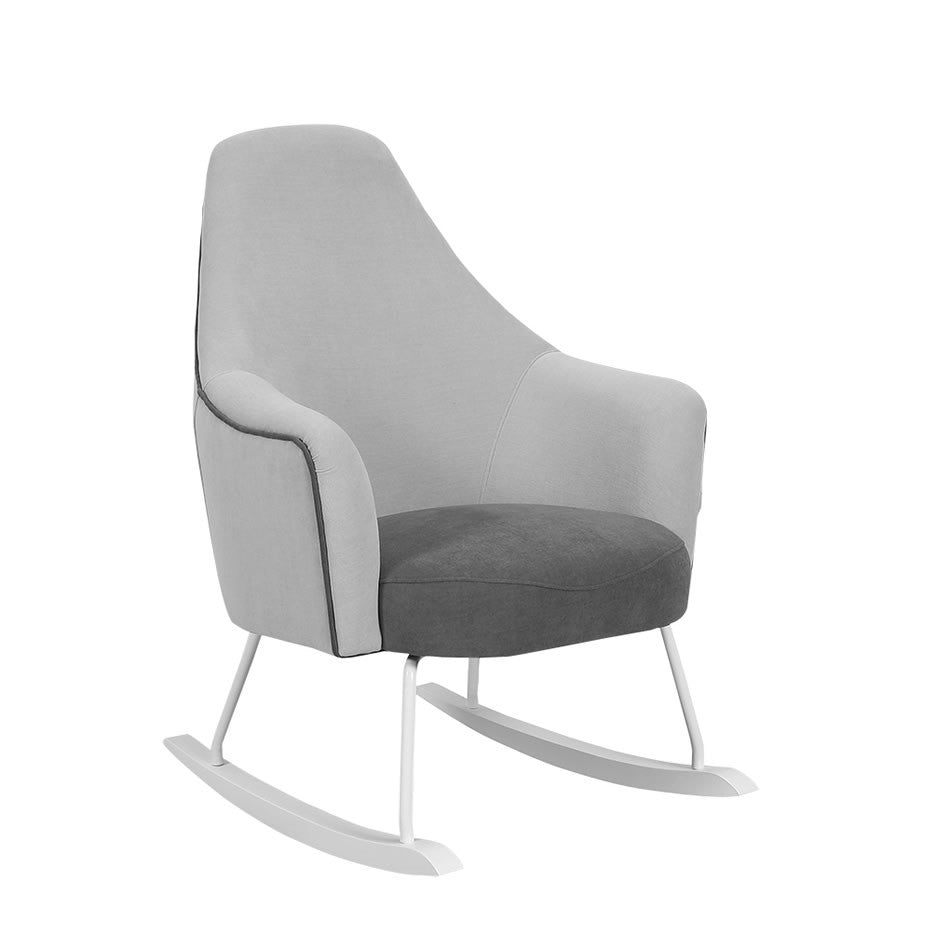 Esta mecedora está disponible en las siguientes combinaciones: Rosa Tierra – Gris Claro, Gris Claro – Gris Noche, Beige – Marrón y el nuevo tejido antibacteriano babybacter Grey.