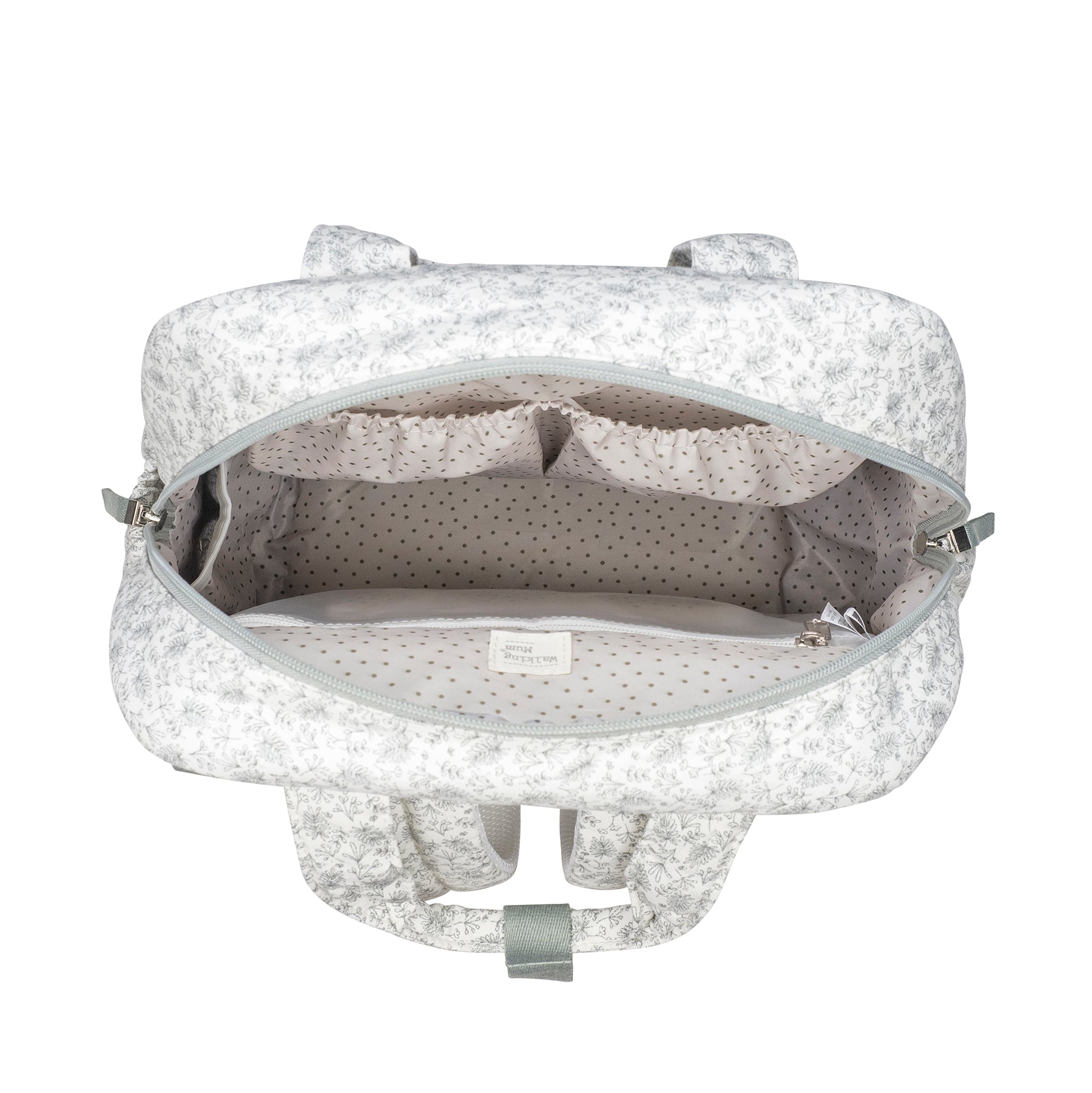 Una bolsa canastilla y mochila al mismo tiempo, ideal para llevar tus cosas y las de tu bebé, con mucho estilo, a todos sus paseos. La mochila Gala con estampado floral está fabricada en 100% algodón con un tratamiento waterproof. La mochila para silla de paseo es un modelo multifunción muy ligero, resistente y de gran capacidad para llevar todo lo necesario en el paseo del bebe. Su esquema ofrece 3 bolsillos exteriores y 4 interiores para poder tener todo ordenado y a mano. En el exterior tiene un bolsillo frontal con cierre de cremallera y dos bolsillos laterales para biberones o botellas. En el interior incopora un bolsillo plastificado para la ropa húmeda, un bolsillo térmico para biberones y dos bolsillos para lo que necesites tener más a mano. Incluye un cambiador a juego con el bolso de maternidad. El bolso incluye 2 asas cortas ajustables que facilitan la colocación en cualquier modelo de silla de paseo, asas de mano y correas acolchadas para colgar en los hombros hacia la espalda, sin generar molestias por el peso. Gran calidad y mucho estilo. Fabricada en 100% algodón con un tratamiento waterproof, de fácil limpieza se puede lavar a mano o máquina. Walking Mum protege a tu bebé utilizando los mejores tejidos, libres de colorantes azoicos y sustancias nocivas para la salud. Nuestra colección Walking Mum guarda toda la calidad de la marca Pasito a Pasito pero con un particular sello de estilo urbano y moderno que no pasa desapercibido, para vestir diferente los paseos con tu bebé. Las bolsas de maternidad de esta línea son más sport y prácticas, especialmente pensadas en mamás y papás modernos que aprecian los diseños más actuales y en tendencia sin dejar de lado la calidad y la funcionalidad de los accesorios que complementan y hacen más cómodos todos los paseos con sus bebés. Especificaciones: Materiales: 100% algodón. Medidas: 37X28X13 cm.