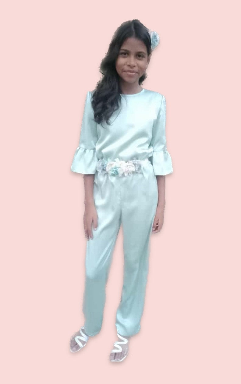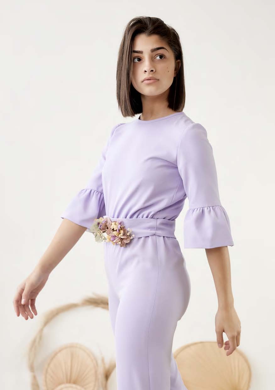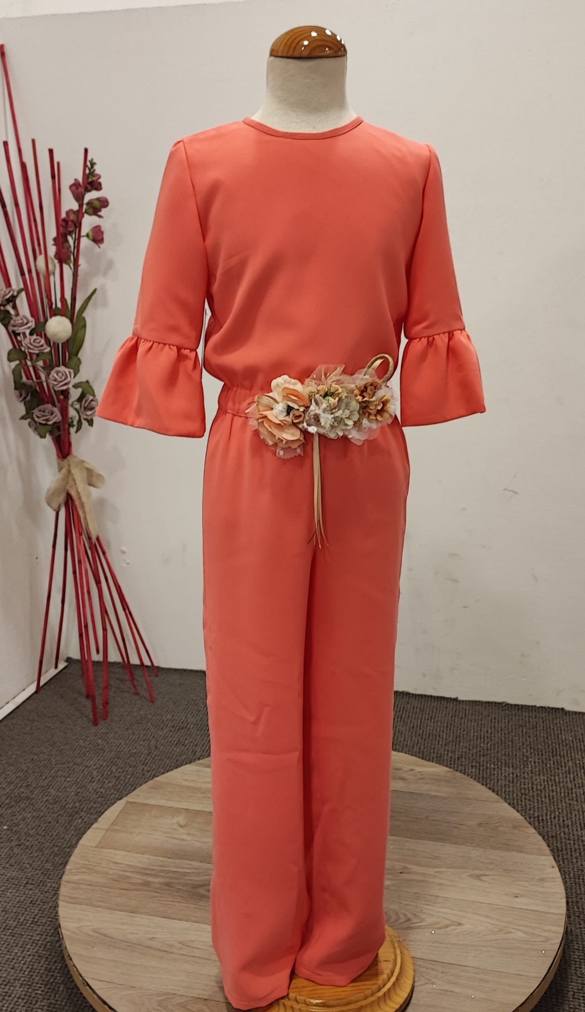 Mono manga larga para niña juvenil de ceremonia que pertenece a la nueva colección de Taracido confeccionado en tejido de creepe.