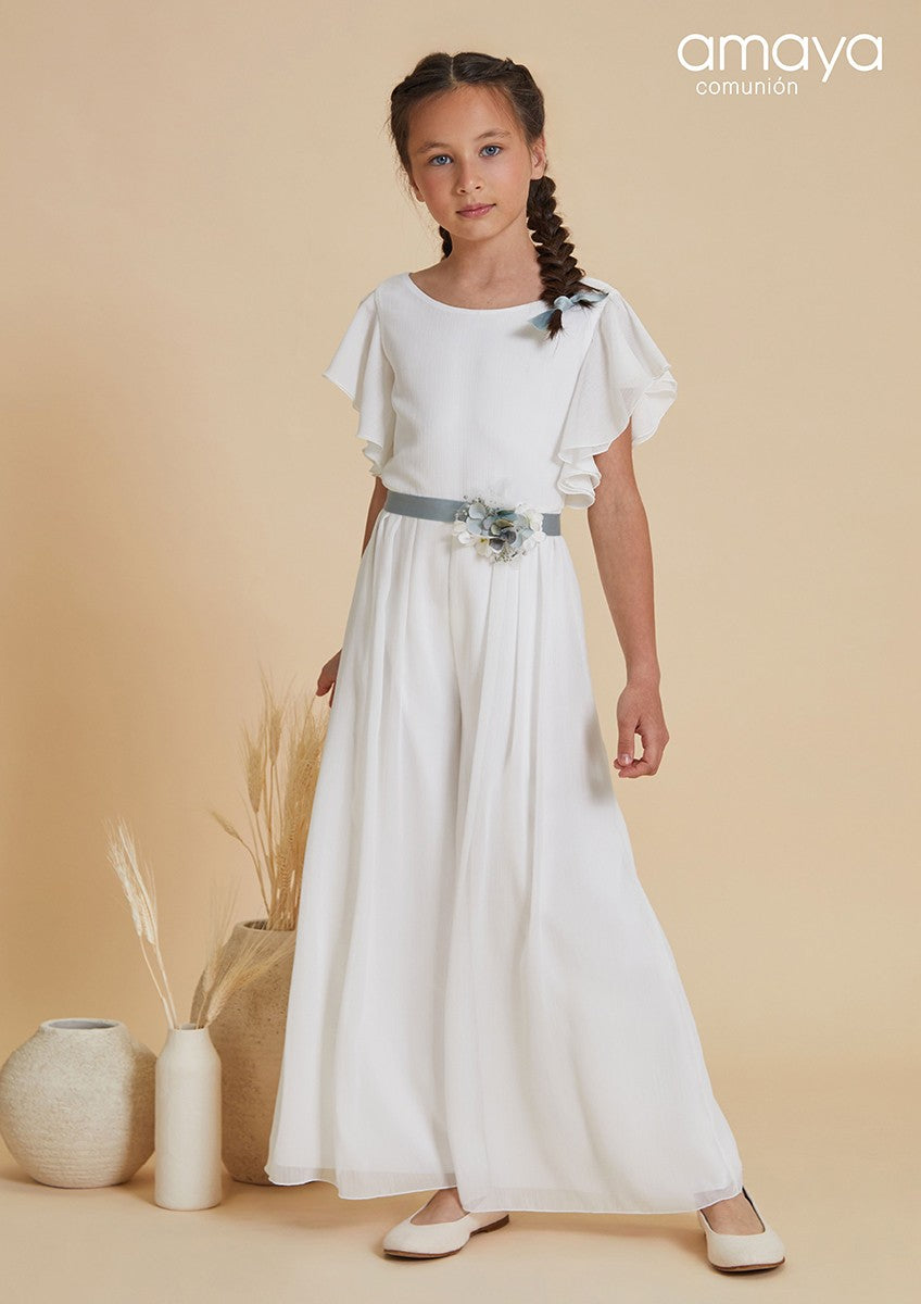 Mono de comunión de la nueva colección 2025 de la firma Amaya Fashion for Kids realizado en tejido de tul.