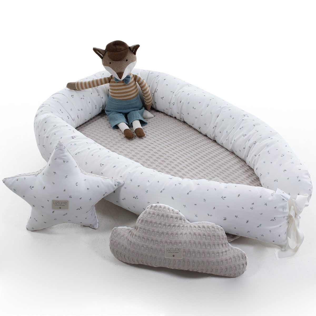 Se puede utilizar como un reductor en la cuna, como un lugar seguro para jugar en el suelo junto al bebé o en una cuna de viaje.