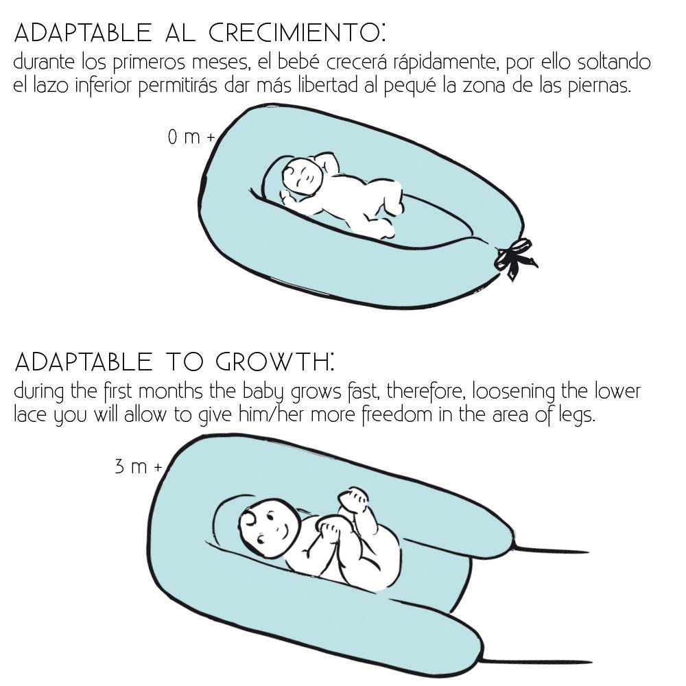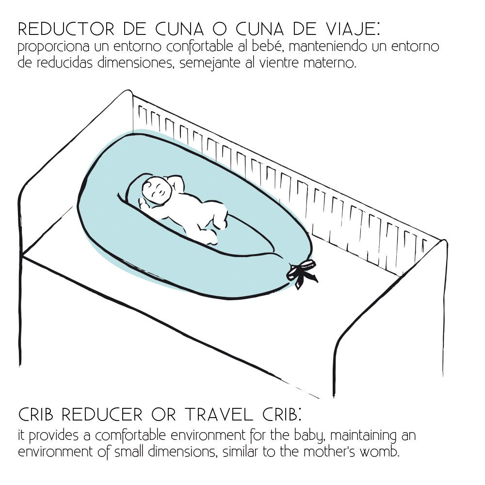 Se puede utilizar como reductor en la cuna, como lugar seguro para jugar en el suelo junto al bebé o en una cuna de viaje.