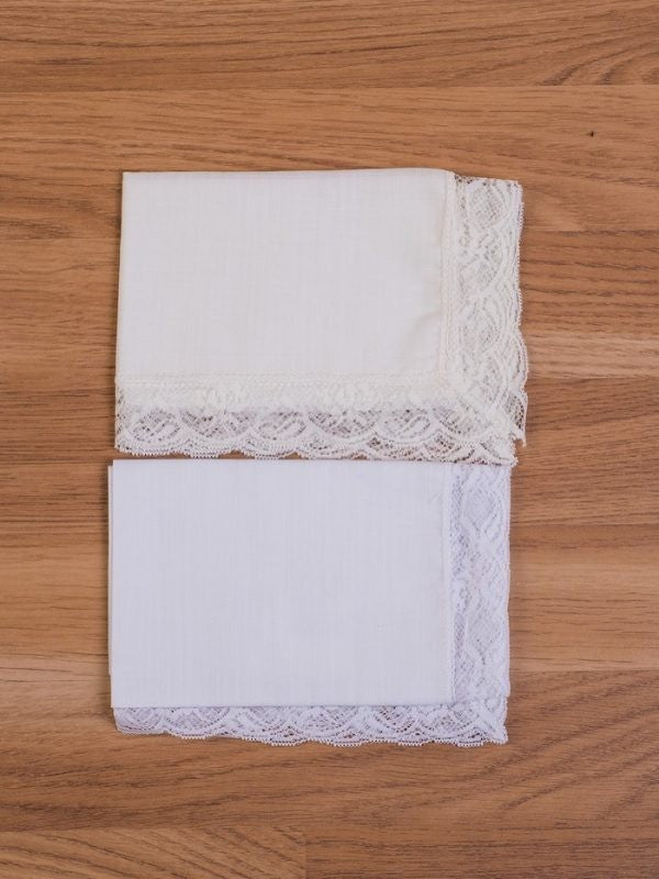 Pañuelo para la ceremonia del bautismo en lino con puntillas en tono crudo.
