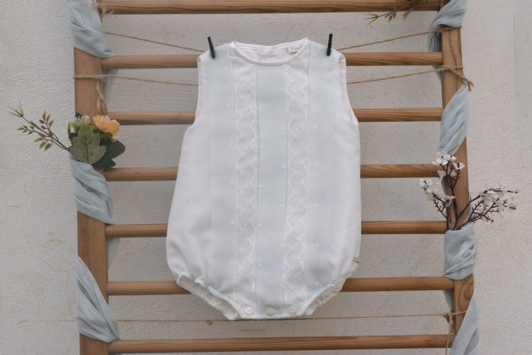 Pelele de ceremonia para bebe de la firma Niseret que pertenece a su nueva colección de verano.