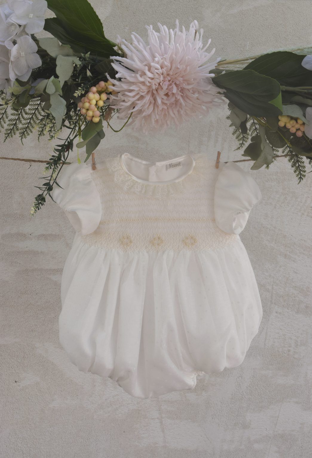 Pelele de ceremonia para bebe de la firma Niseret.