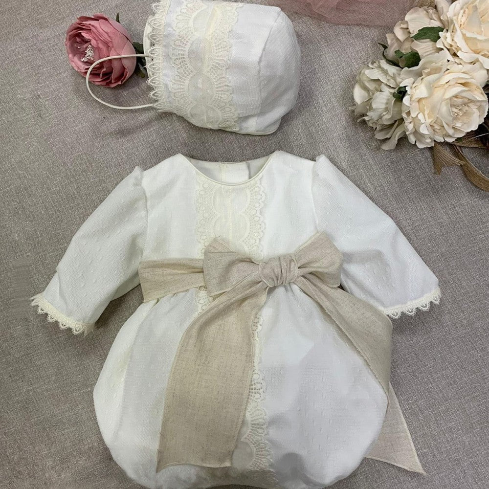Pelele de tul de plumeti en color crudo de la colección de bautizo de Lilus.