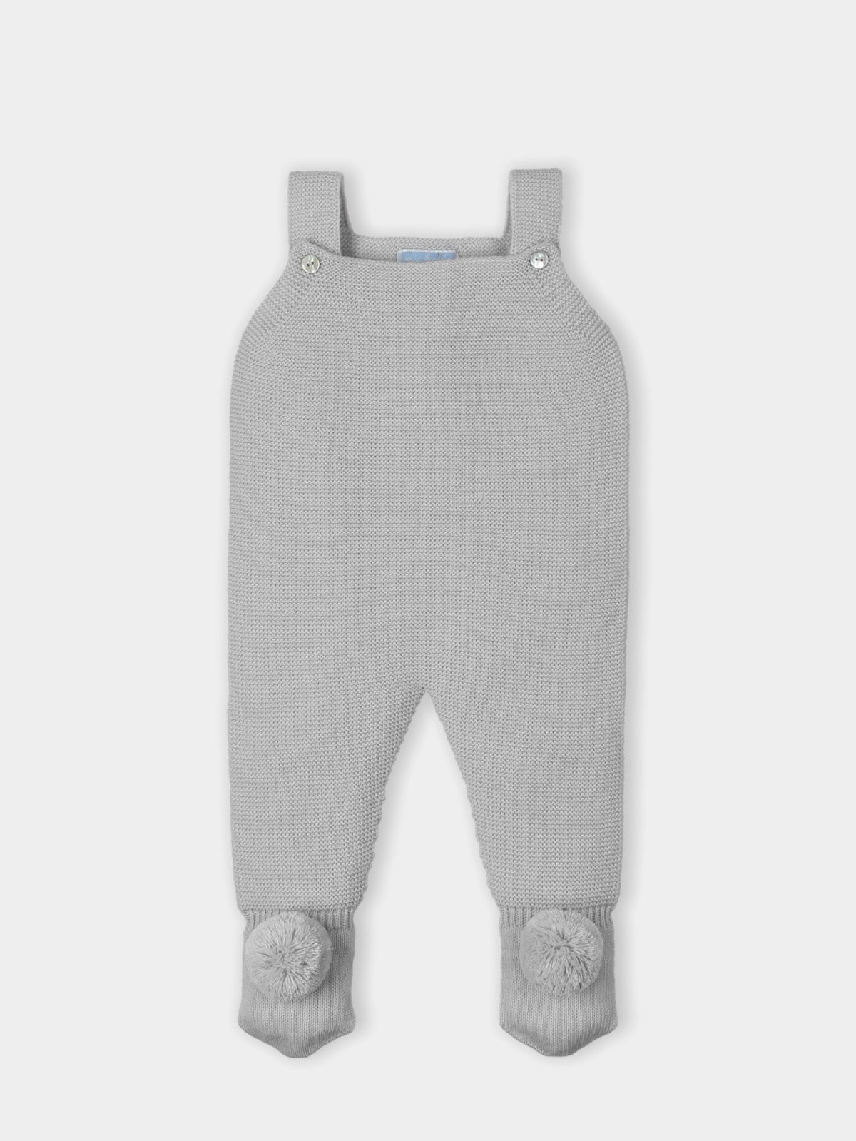 Peto para bebé realizado en punto con pie sin costuras y pompones de punto en pie