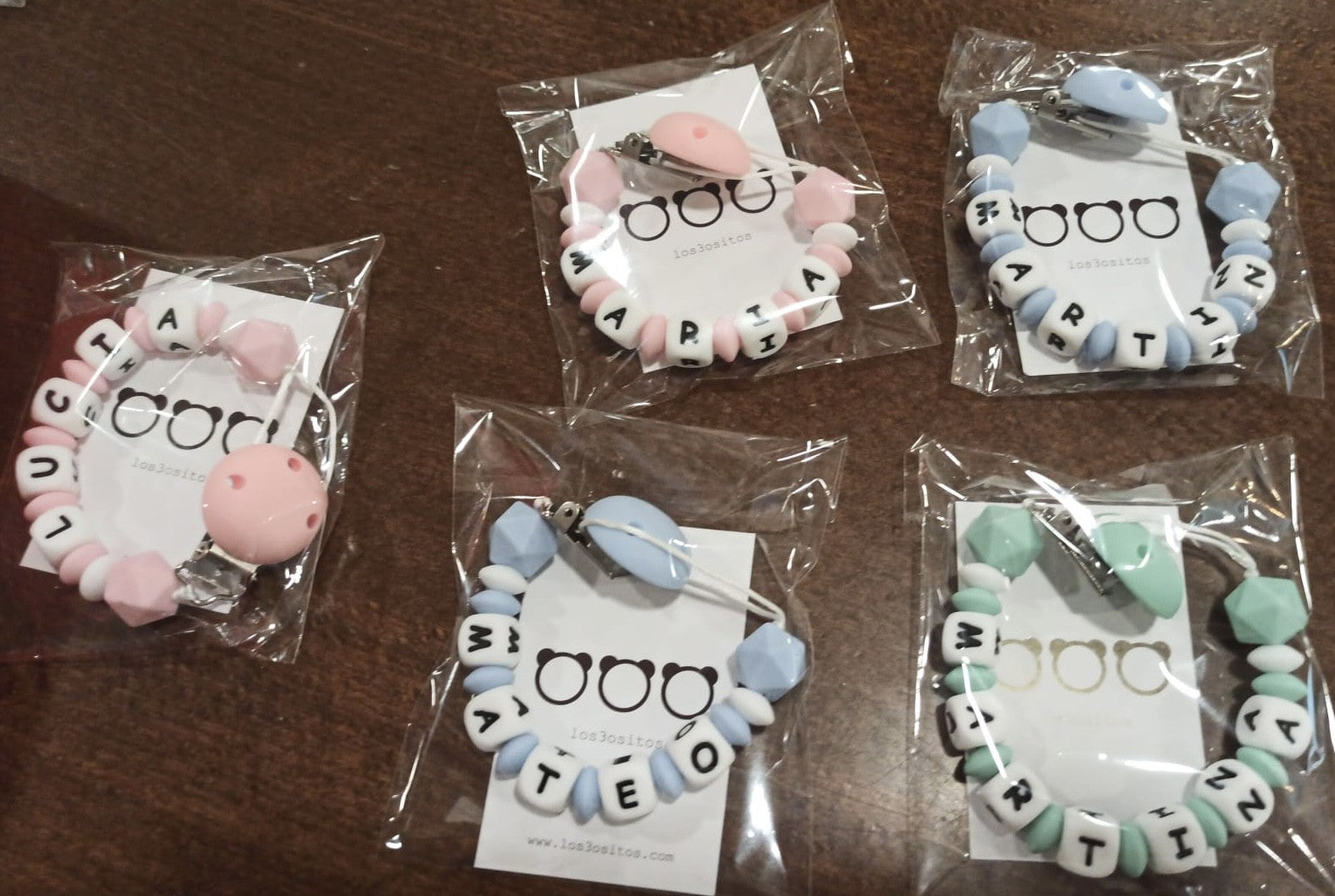 La Pinza Chupete Personalizada Los3ositos es un accesorio diseñado especialmente para mantener el chupete de tu bebé siempre a mano, evitando pérdidas y caídas al suelo. Está fabricada en nuestro taller de Talavera de la Reina, garantizando calidad y atención al detalle en cada pieza. Además, incorpora bolitas que cumplen una doble función: sirven como sujetachupetes y también como mordedor, ofreciendo alivio a las encías del bebé durante la dentición. Puedes personalizarla con el nombre de tu pequeño y elegir entre tres colores suaves y delicados: azul, verde y rosa. El tiempo de entrega es rápido, de 2 a 3 días, para que puedas disfrutarla cuanto antes. Un producto práctico, seguro y personalizado que acompaña a tu bebé en su día a día con estilo y funcionalidad.