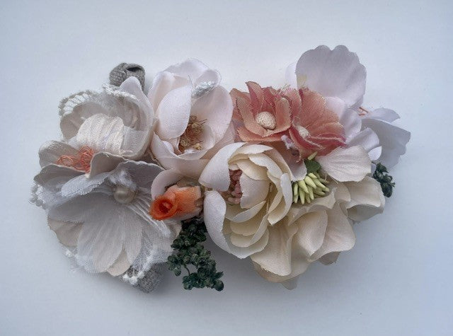 Precioso tocado floral hecho a mano con distintos tipos de flor.