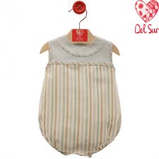 Ranita tipo bombacho sin mangas en tejido de rayas azul y camel.