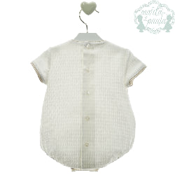 Ranita en blanco roto con mangas con cinta frontal bordada en tonos arena.