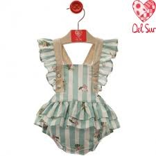 Ranita sin mangas en tejido de rayitas verde y blanco.