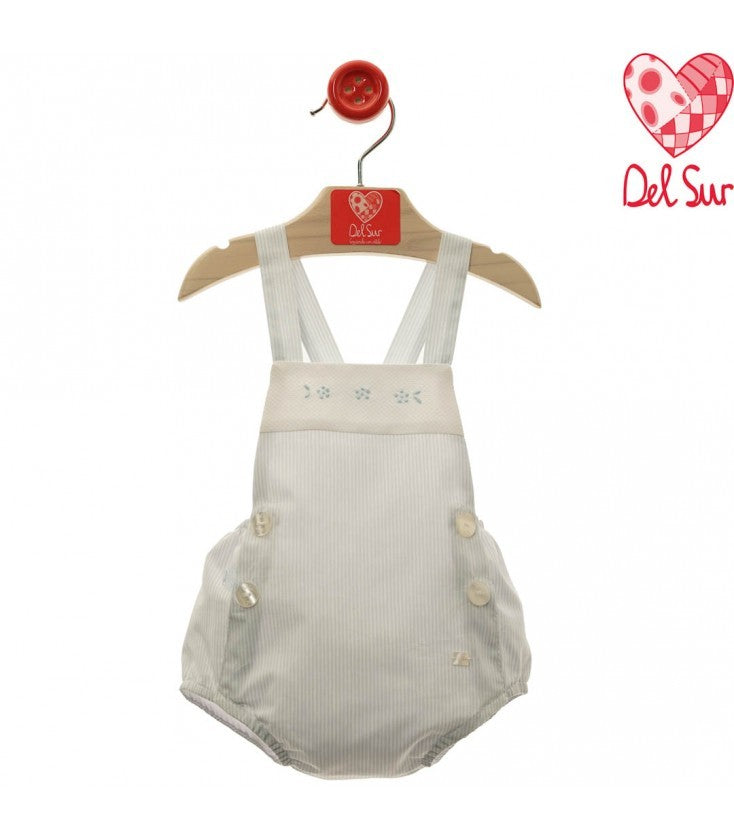 Ranita de rayitas azul celeste con pecho en piqué blanco en tipo pelele.
