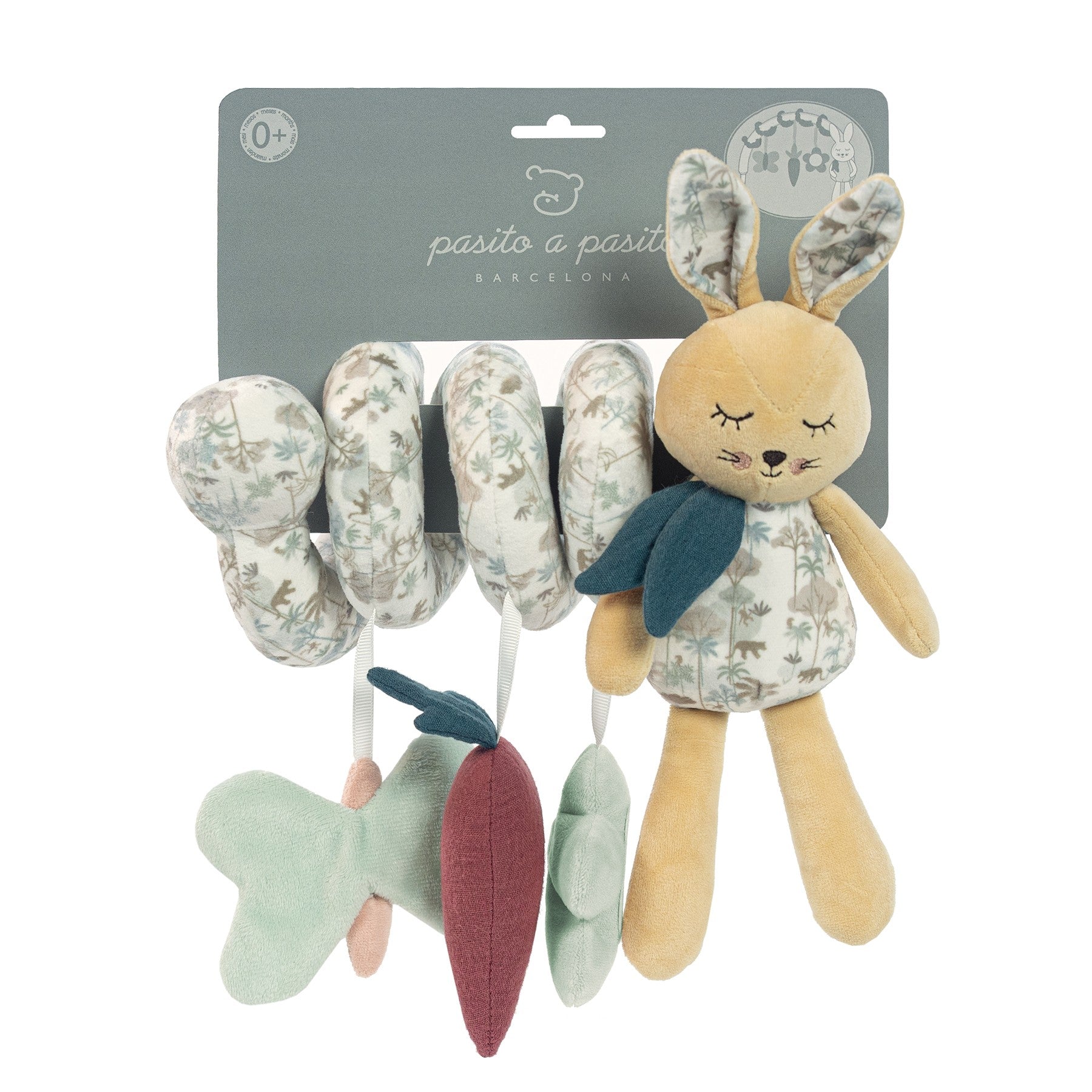 Entretenido sonajero de silla de paseo con conejito en beige. Especialmente diseñado para los momentos de juego del bebé en el cochecito de paseo. Fabricado bajo normativa de seguridad en juguetes EN-71. Peluches y complementos de Pasito a pasito.