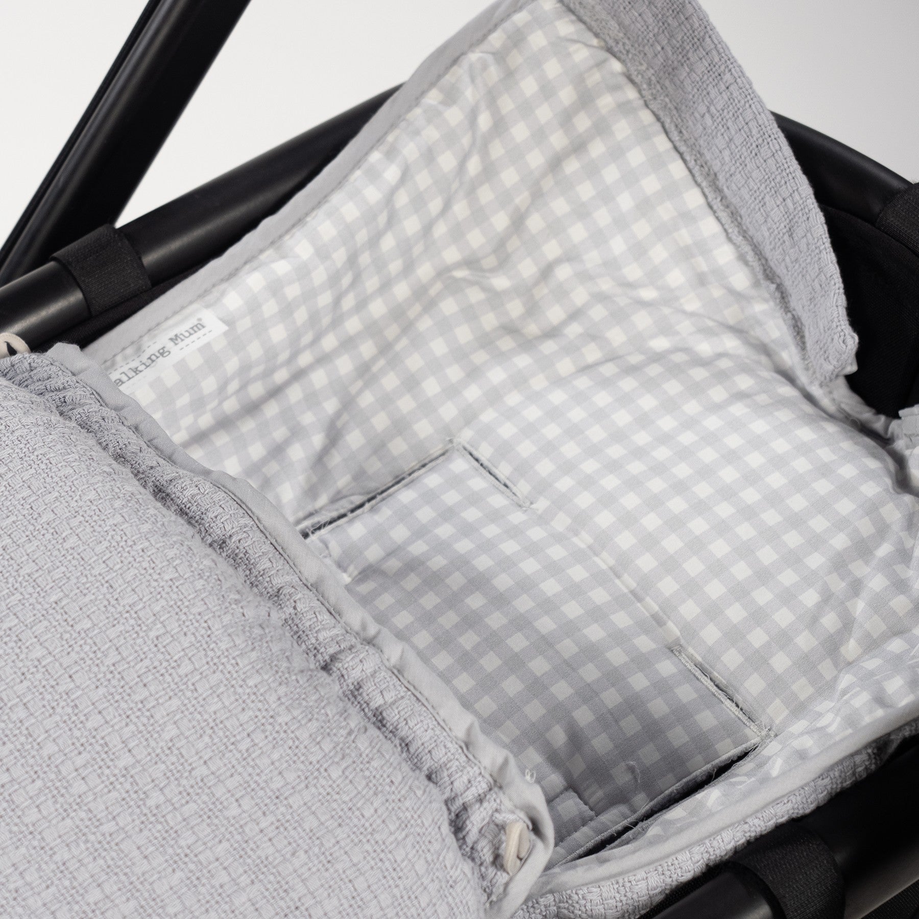 Funda con saco I love vichy ideal para cuco y portabebé.