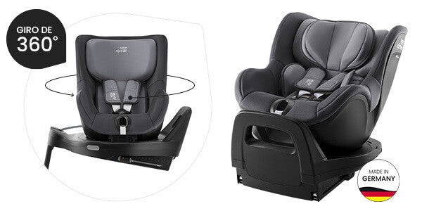 Gracias a su rotación de 360º, opcionalmente también puede orientarse de cara a la marcha desde los 15 meses y 76 cm de estatura, además girar lateralmente hacia la puerta abierta del coche para poder colocar y abrochar al niño con mayor comodidad.