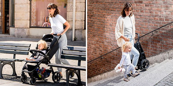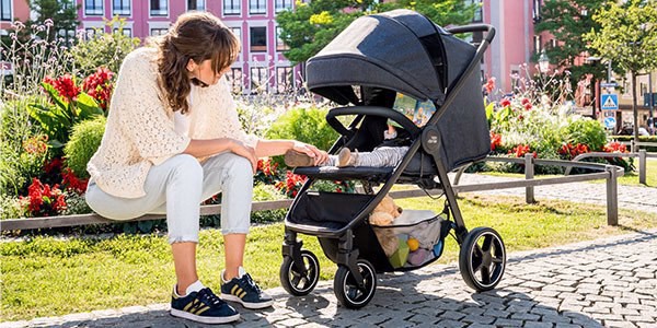 Todas las ruedas constan de suspensión individual, adaptándose al peso de tu hijo para mantener la silla equilibrada asegurando un paseo suave incluso en superficies con baches.