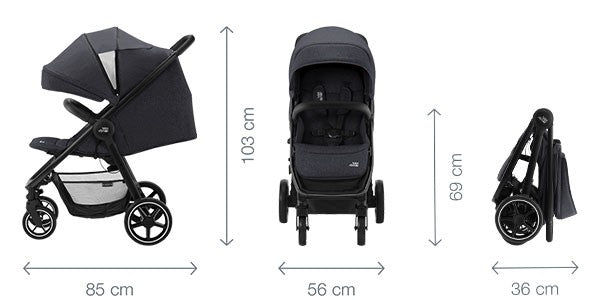 Silla de paseo plegada (con el asiento y las ruedas): 69 x 56 x 36 cm (Al x An x Pr)