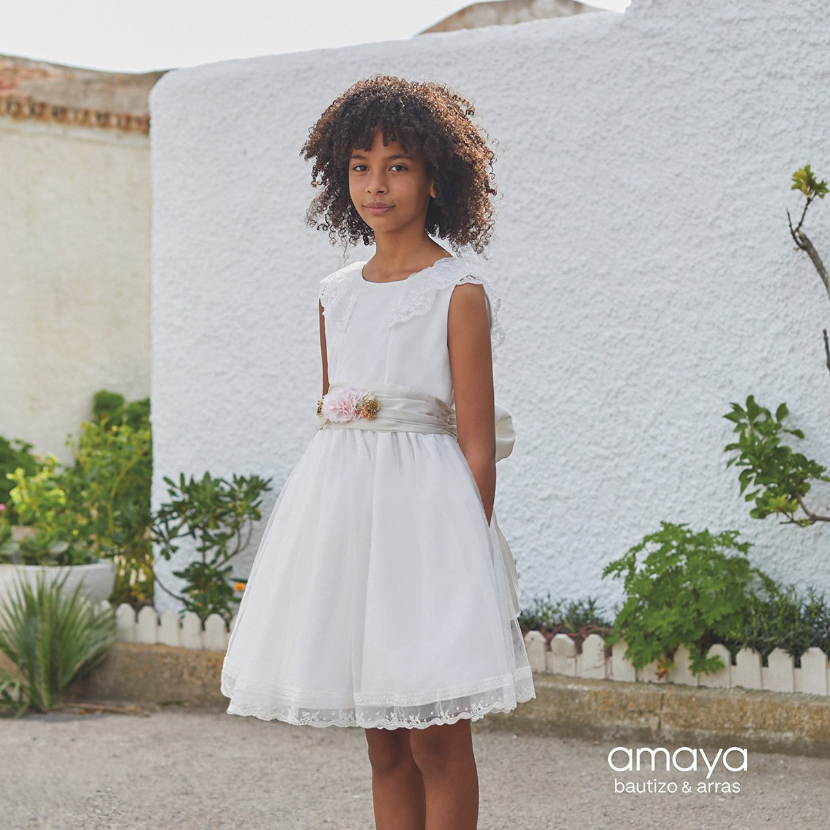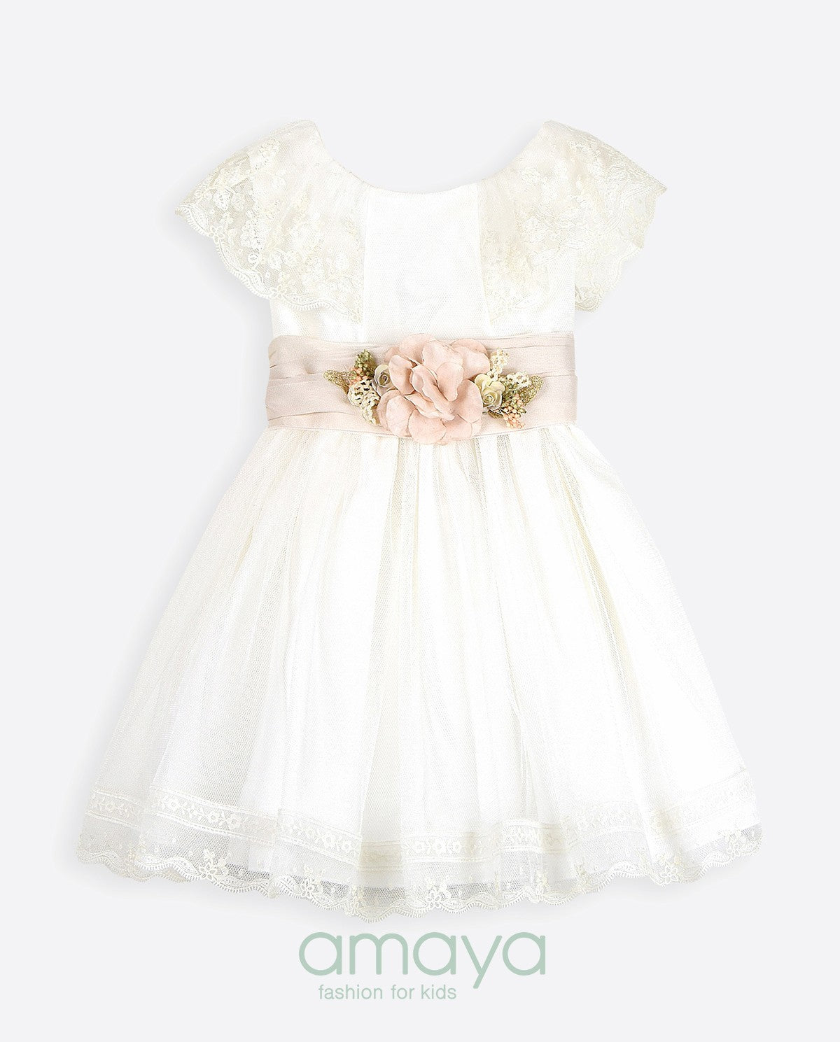 Espectacular y elegante vestido de ceremonia, realizado en tejido de tul.