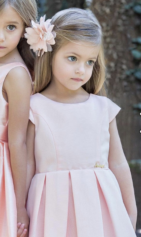 El Vestido Ceremonia Amaya 111439 destaca por su diseño elegante y sofisticado, ideal para ocasiones especiales. Confeccionado en tejido de otomán, ofrece una textura refinada y un aspecto clásico que realza cualquier evento. Su falda presenta tablones que aportan volumen y movimiento, brindando una silueta armoniosa y femenina. En la parte trasera, la cinta de tul añade un detalle delicado y moderno que equilibra perfectamente la sobriedad del tejido principal. Este vestido, fabricado íntegramente en España, garantiza calidad y cuidado en cada costura, combinando tradición y estilo para una ceremonia inolvidable.