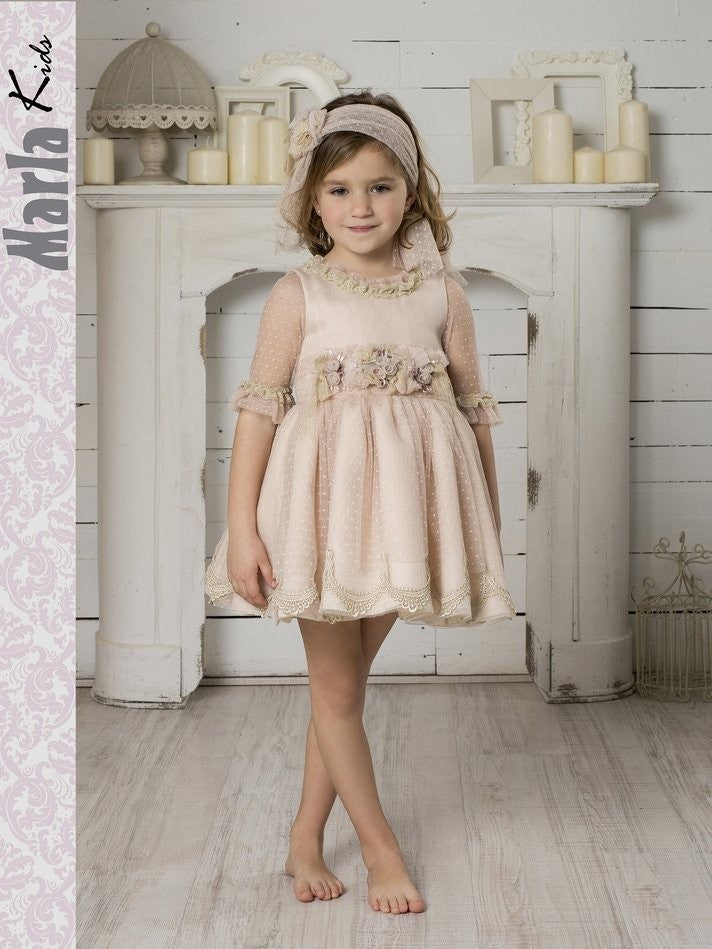 Fabricado en tul plumeti con fondo en color salmón con mangas semitransparente al codo terminando en puntilla rizada.