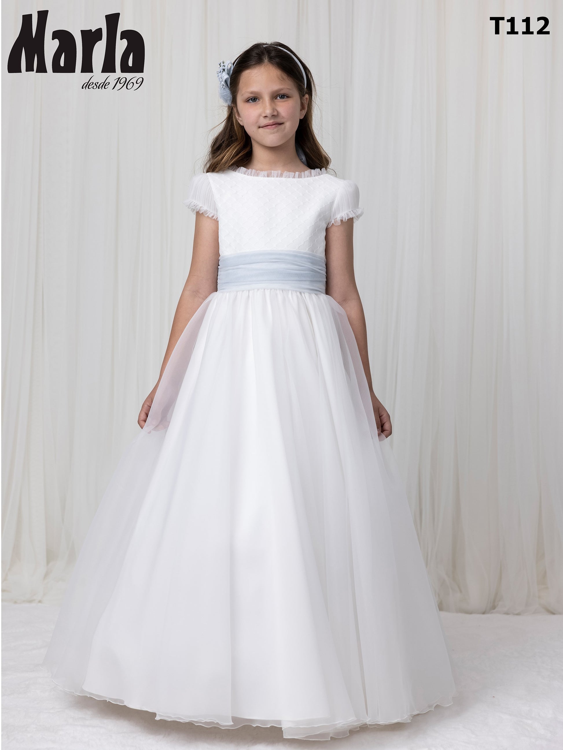 Este vestido lleva un precioso tocado de comunión a juego con el fajín del vestido que vendemos por separado.