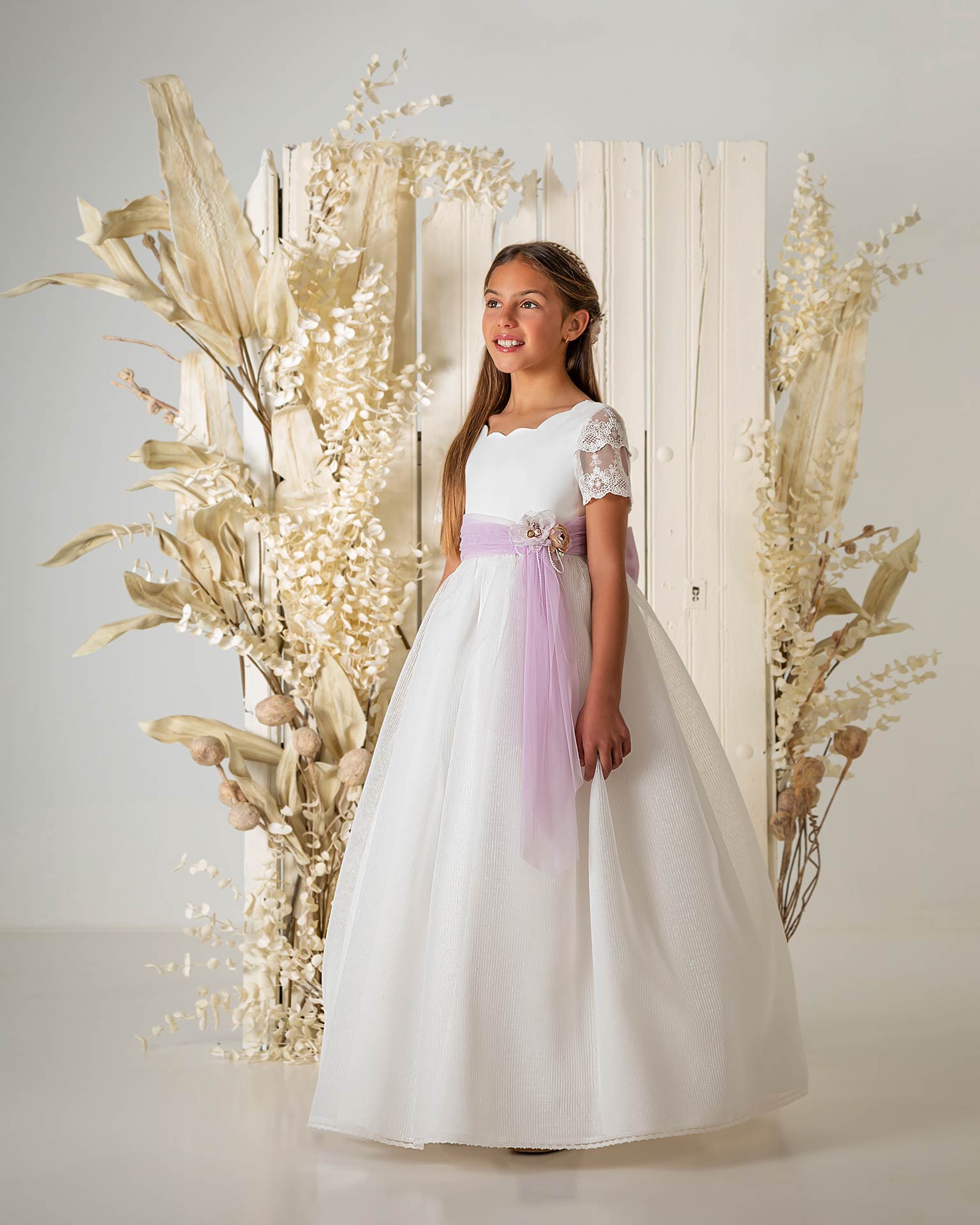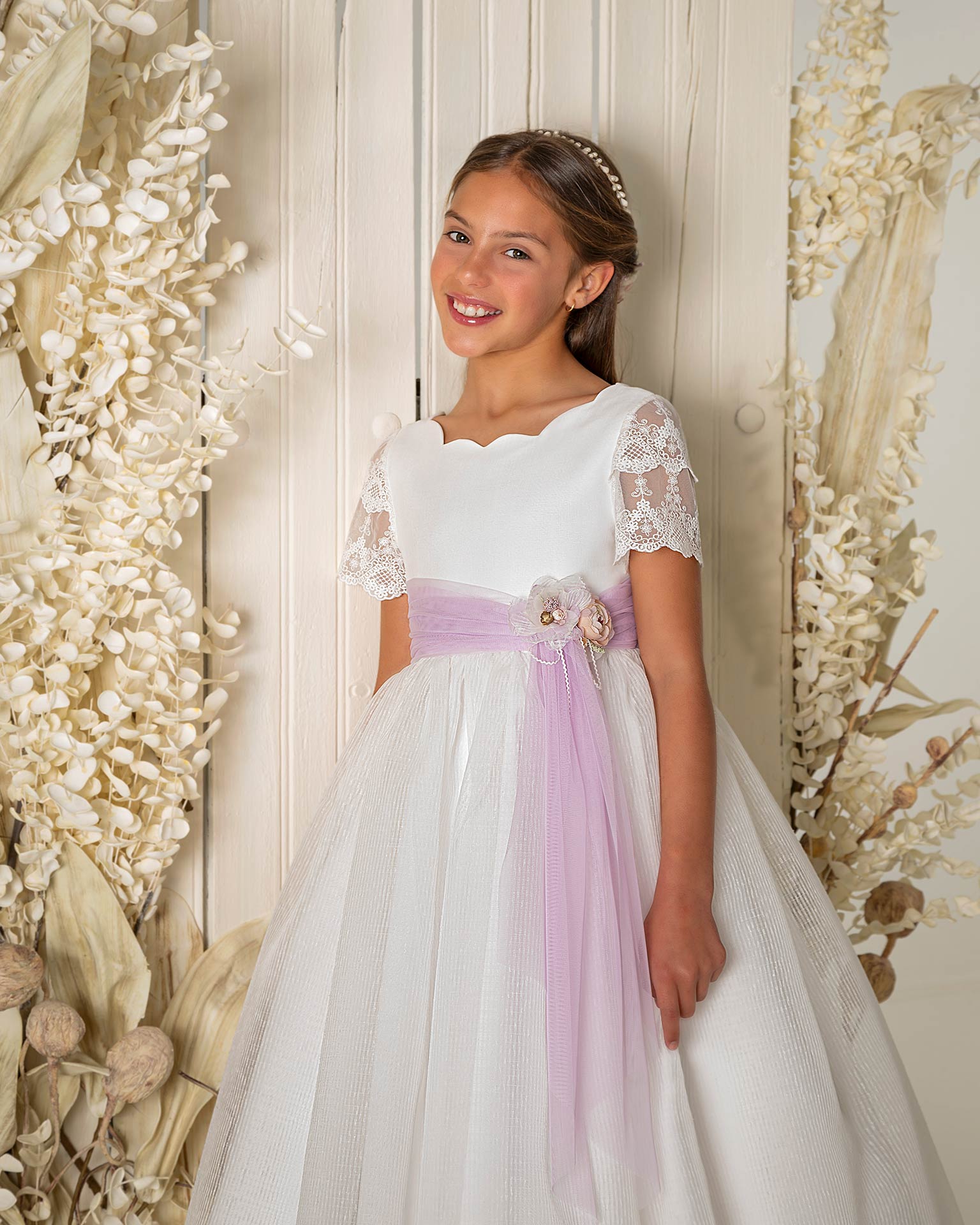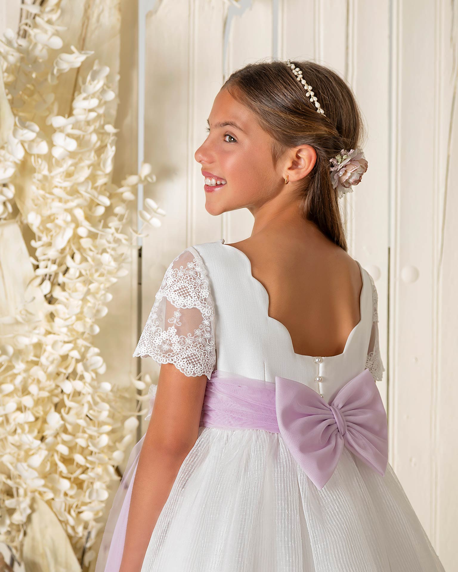 Este vestido lleva un precioso tocado de comunión a juego y cancán que vendemos por separado.