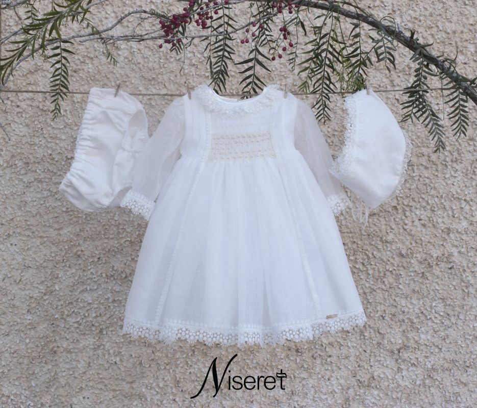 Este jesusito para bebé es perfecto para ocasiones especiales como bautizos y ceremonias, combinando elegancia y tradición. Confeccionado en muselina de alta calidad, destaca por su delicado bordado en nido de abeja realizado totalmente a mano, que aporta un toque artesanal y exclusivo.