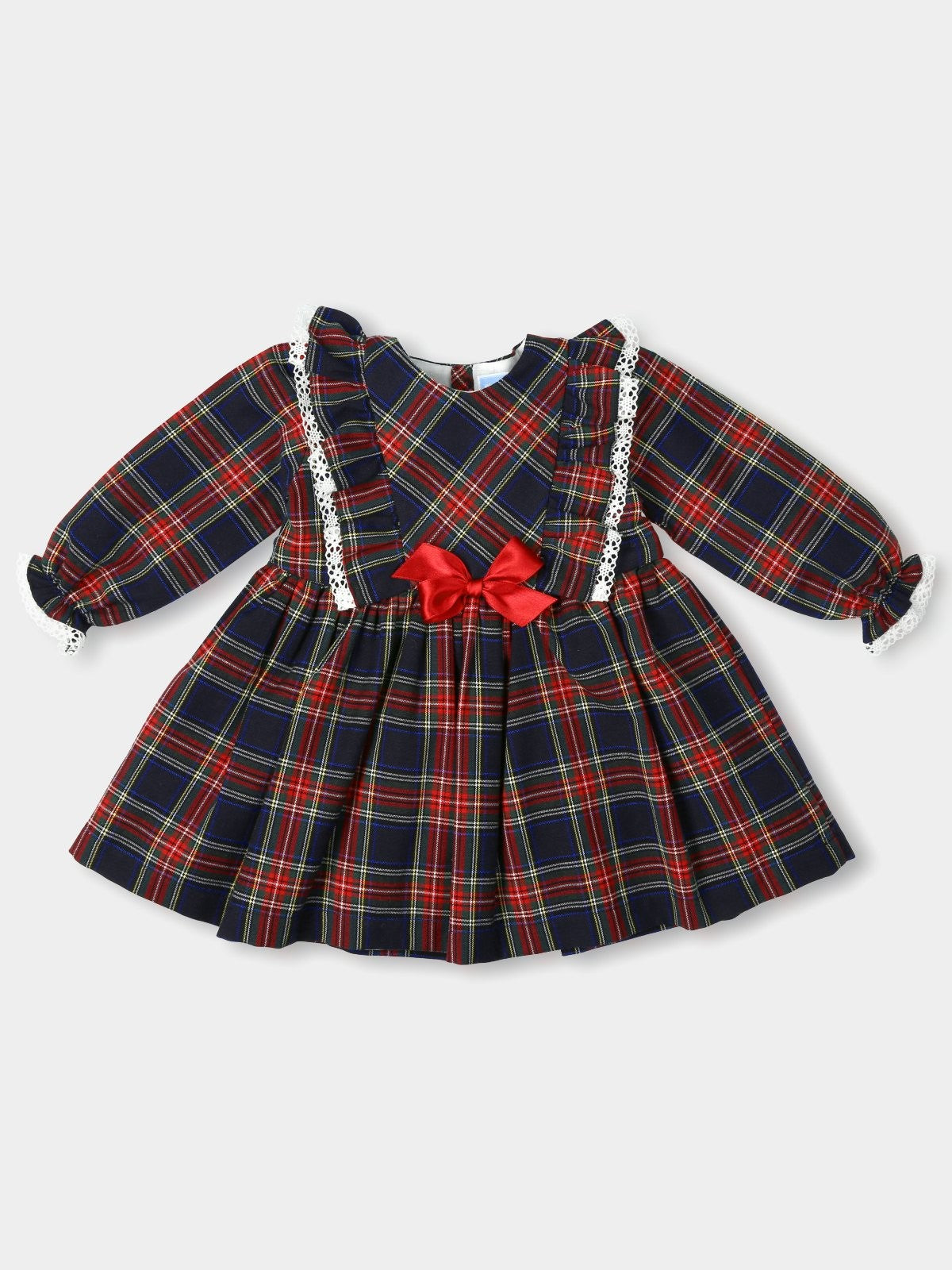 Vestido de vuelo con volantes y puntillas en el cuerpo en tejido de cuadros escoceses