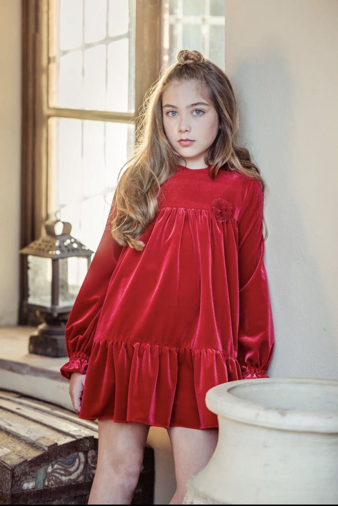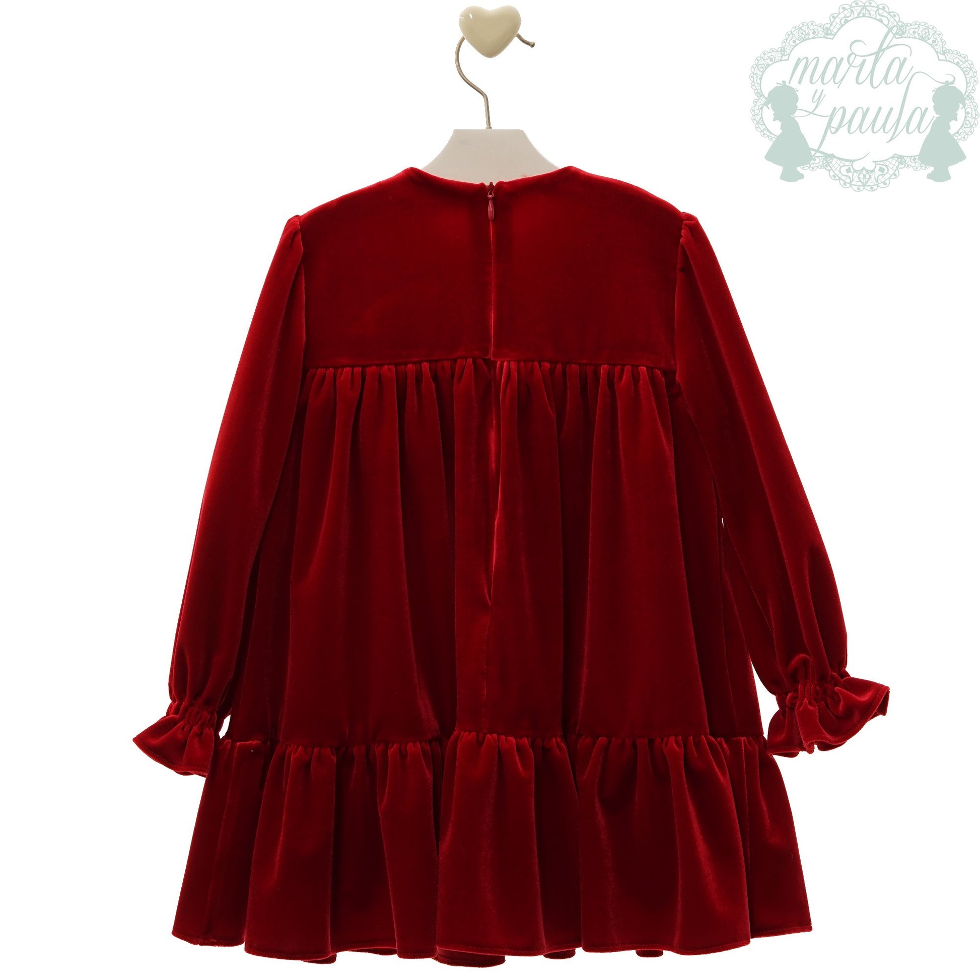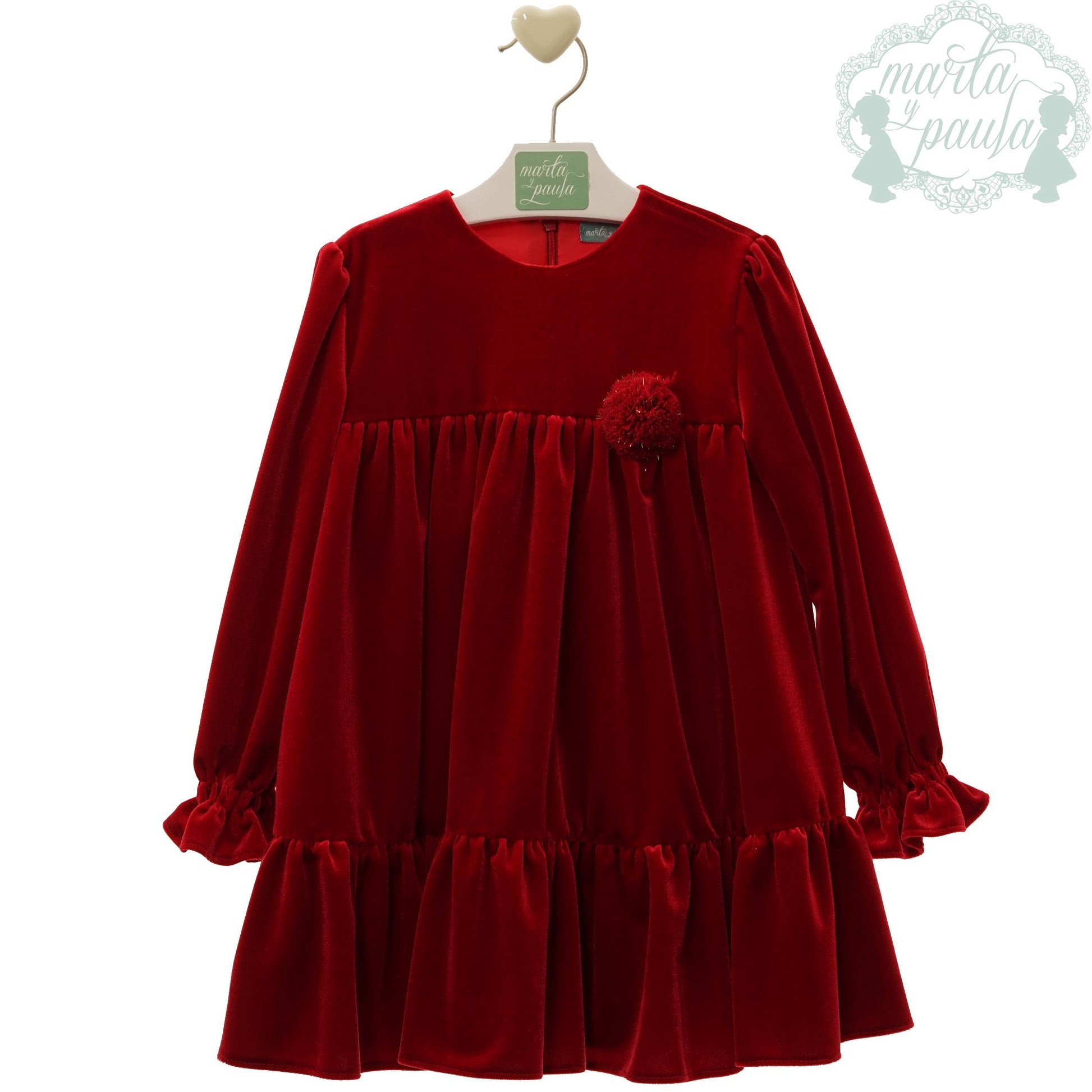 Vestido de la colección otoño-invierno Valentino de Marta y Paula, diseñado para vestir a los niños y niñas con elegancia en ocasiones especiales. Este vestido de terciopelo rojo destaca por su suave textura y un delicado pompón en el pecho que aporta un toque único y encantador. Ideal para reuniones familiares, celebraciones y momentos llenos de alegría, amor y color, combina estilo y comodidad en un solo diseño. Confeccionado cuidadosamente en España, garantiza calidad y atención al detalle para que los más pequeños luzcan impecables y se sientan cómodos durante todo el día.