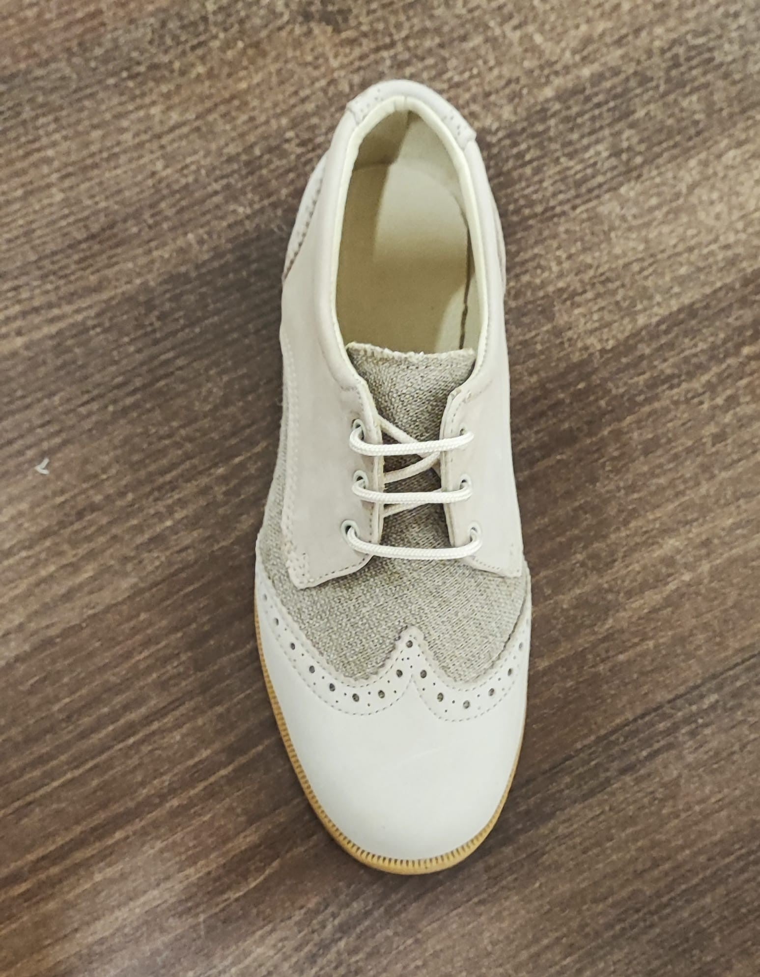 Estos zapatos infantiles con cordones están diseñados para ofrecer elegancia y comodidad en ocasiones especiales, como ceremonias y eventos formales. Combina piel de nobuk y piel rústica en un acabado refinado que se adapta a diversas tonalidades de trajes, garantizando un look impecable y versátil. Fabricados en España con piel de alta calidad tanto en el interior como en el exterior, aseguran transpirabilidad y durabilidad. Su diseño atemporal permite que sean una inversión para el vestuario infantil, proporcionando un ajuste cómodo y seguro gracias a sus cordones, ideales para acompañar al niño en sus momentos más importantes.